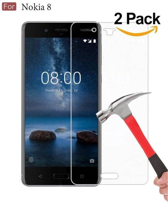 2 Stuk - Nokia 8 Glazen Screenprotector Tempered Glass (0.3mm)