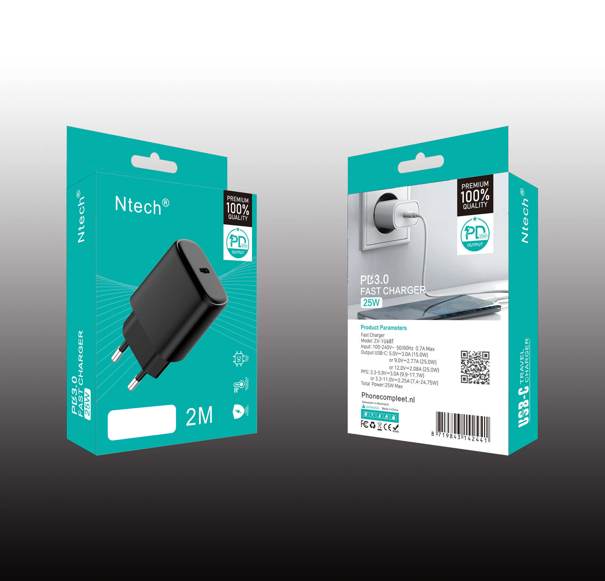 Met de Ntech 25W GaN USB-C Adapter en duurzame nylon kabel laad je je iPhone sneller, veiliger en stijlvoller op dan ooit tevoren. De ideale keuze voor Apple-gebruikers die alleen het beste willen.