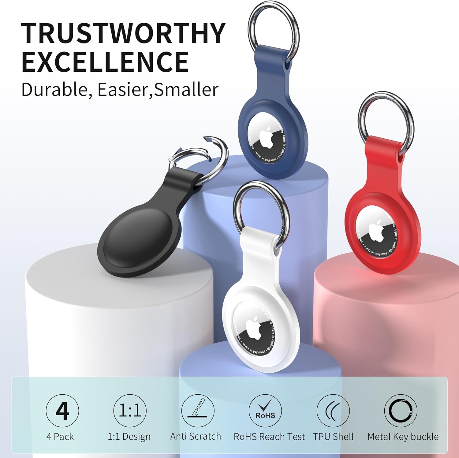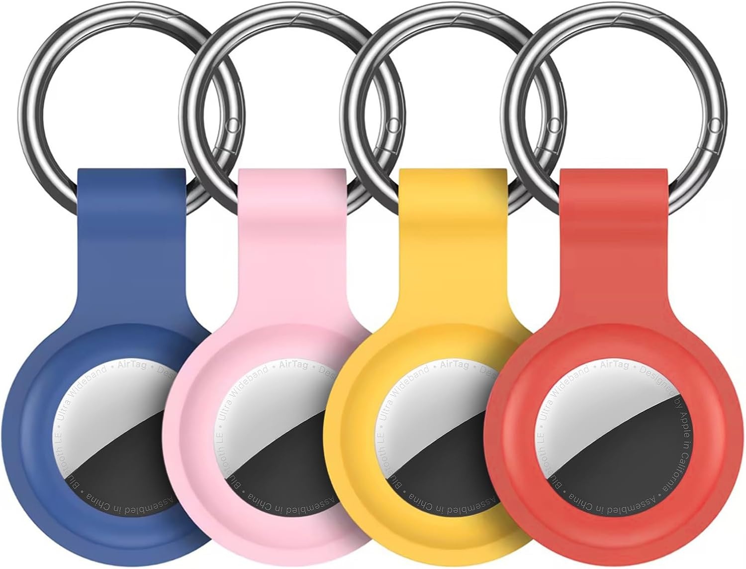 4 Pack - Sleutelhanger set voor Apple AirTag Geel / Blauw / Roze en Rood - Waterdicht optie - Beschermhoes - AirTag Houder - AirTag Hanger - AirTag Hoesje