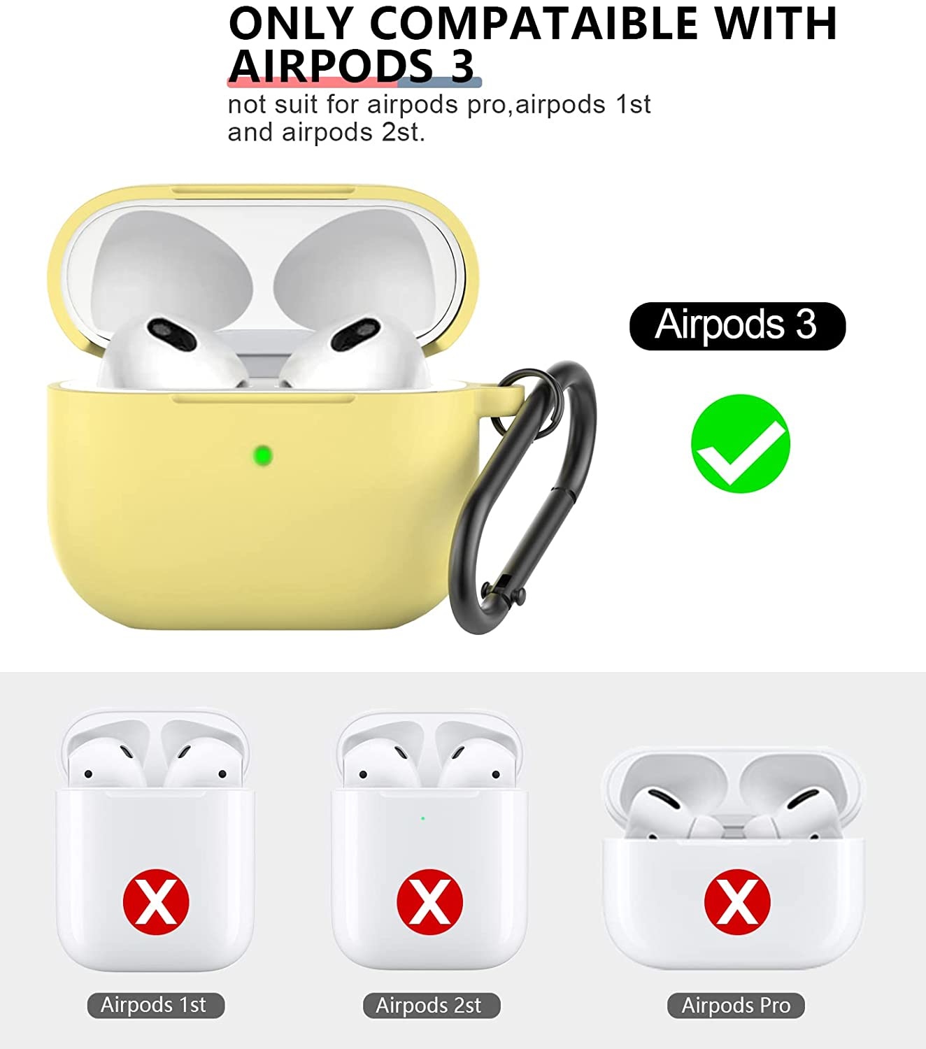 Deze zachte silicone hoesje voor Apple AirPods 3 Case Met sleutelhanger voor Apple Airpods zijn super handig en biedt ook de optimale bescherming voor je AirPods 3 charger case en je airpods. Biedt bescherming tegen krassen, vuil en stoten. Het Airpods case hoesje is gemaakt van sterke kunstlederen materiaal met een eenvoudig te openen en te sluiten kapje aan de bovenzijde. En dankzij de speciale uitsparing aan de onderzijde kun je je Airpods ook in het Airpods case hoesje opladen! Ook zit er een uitsparing op het Airpods case hoesje zodat u het knopje op uw Airpods case hoesje nog steeds in kunt drukken.