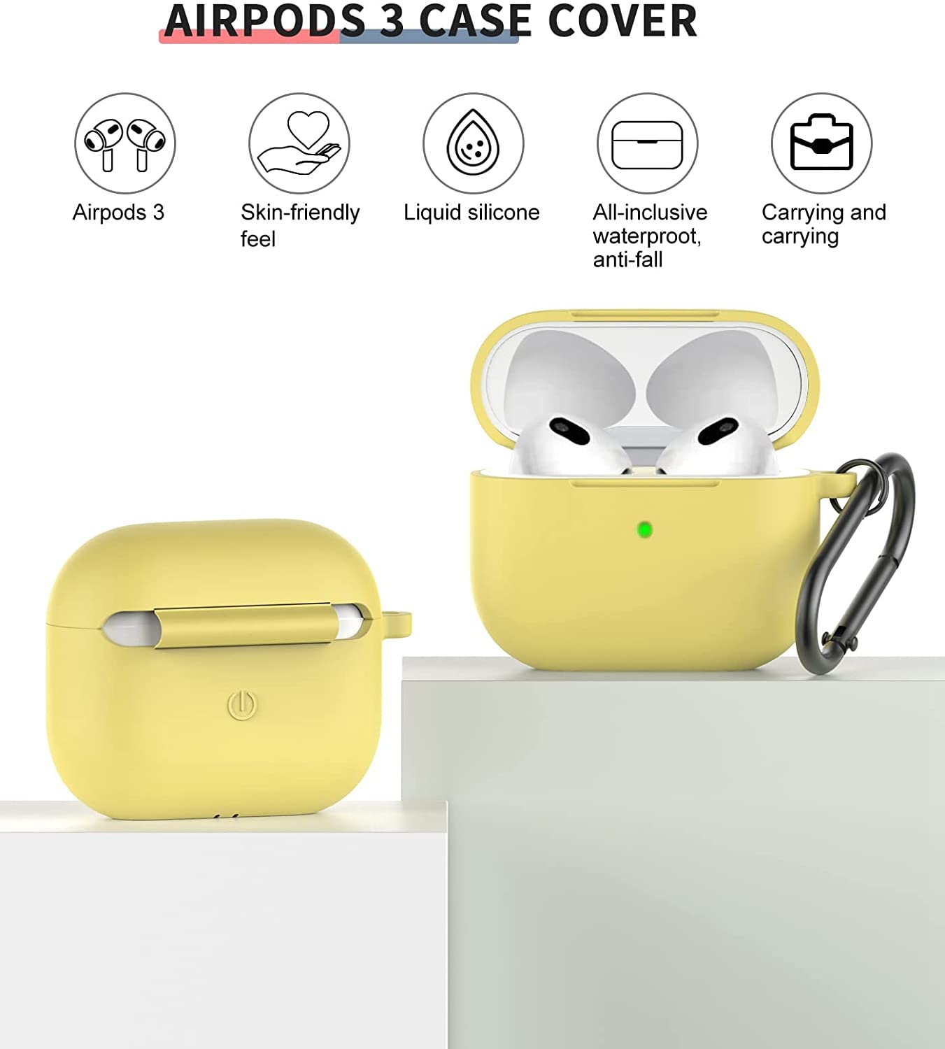 Hoesje Geschikt voor Apple Airpods 3 hoesje Silicone Case Geel - Hoesje Geschikt voor Apple Airpodss 3 Case Siliconen Hoes - Hoesje Geschikt voor Apple Airpodss 3 Hoes Cover