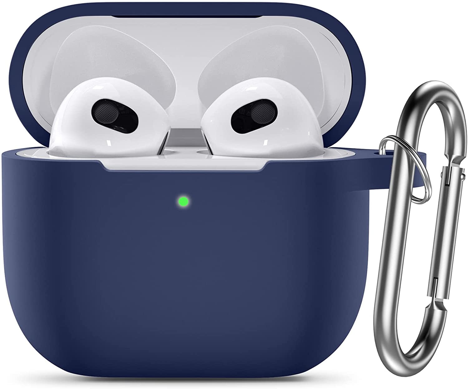 Hoesje Geschikt voor Apple Airpods 3 hoesje Silicone Case Navy - Hoesje Geschikt voor Apple Airpodss 3 Case Siliconen Hoes - Hoesje Geschikt voor Apple Airpodss 3 Hoes Cover