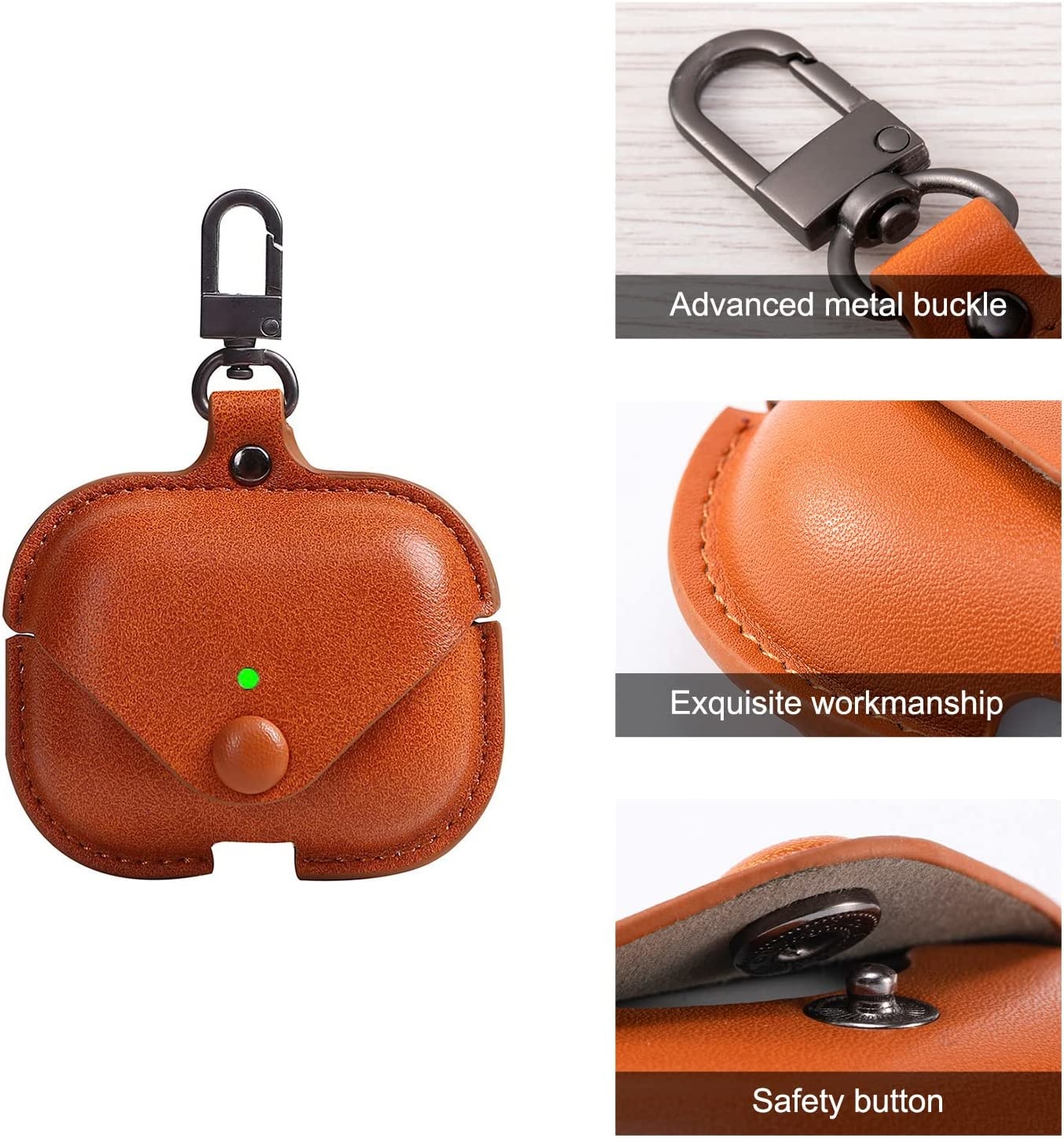 Ditis zacht kunstleer hoesje voor Apple AirPods Promet sleutelhanger. Het hoesje is super handig en biedt optimale bescherming voor je AirPods Pro tegen krassen, vuil en stoten. Het Airpods Pro case hoesje is gemaakt van sterke kunstleer met een eenvoudig te openen en te sluiten kapje aan de bovenzijde. En dankzij de speciale uitsparing aan de onderzijde kun je je Airpods Pro ook in het Airpods case hoesje opladen! Ook zit er een uitsparing op het Airpods Pro hoesje zodat u het knopje op uw Airpods hoesje nog steeds in kunt drukken.