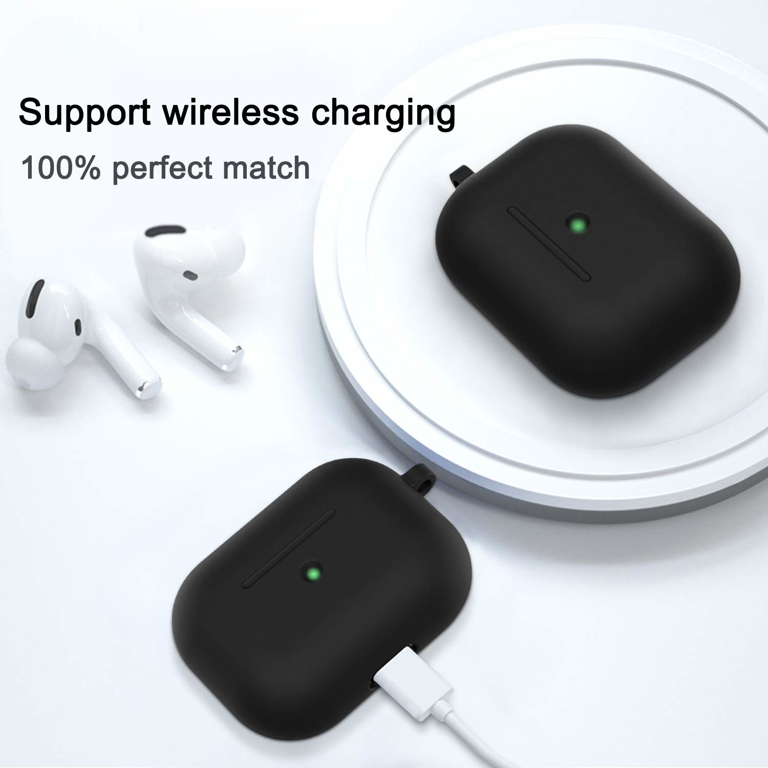Deze zachte silicone hoesje voor Apple AirPods Pro Case Met sleutelhanger voor Apple Airpods zijn super handig en biedt ook de optimale bescherming voor je AirPods Pro charger case en je airpods. Biedt bescherming tegen krassen, vuil en stoten. Het Airpods case hoesje is gemaakt van sterke kunstlederen materiaal met een eenvoudig te openen en te sluiten kapje aan de bovenzijde. En dankzij de speciale uitsparing aan de onderzijde kun je je Airpods ook in het Airpods case hoesje opladen! Ook zit er een uitsparing op het Airpods case hoesje zodat u het knopje op uw Airpods case hoesje nog steeds in kunt drukken.