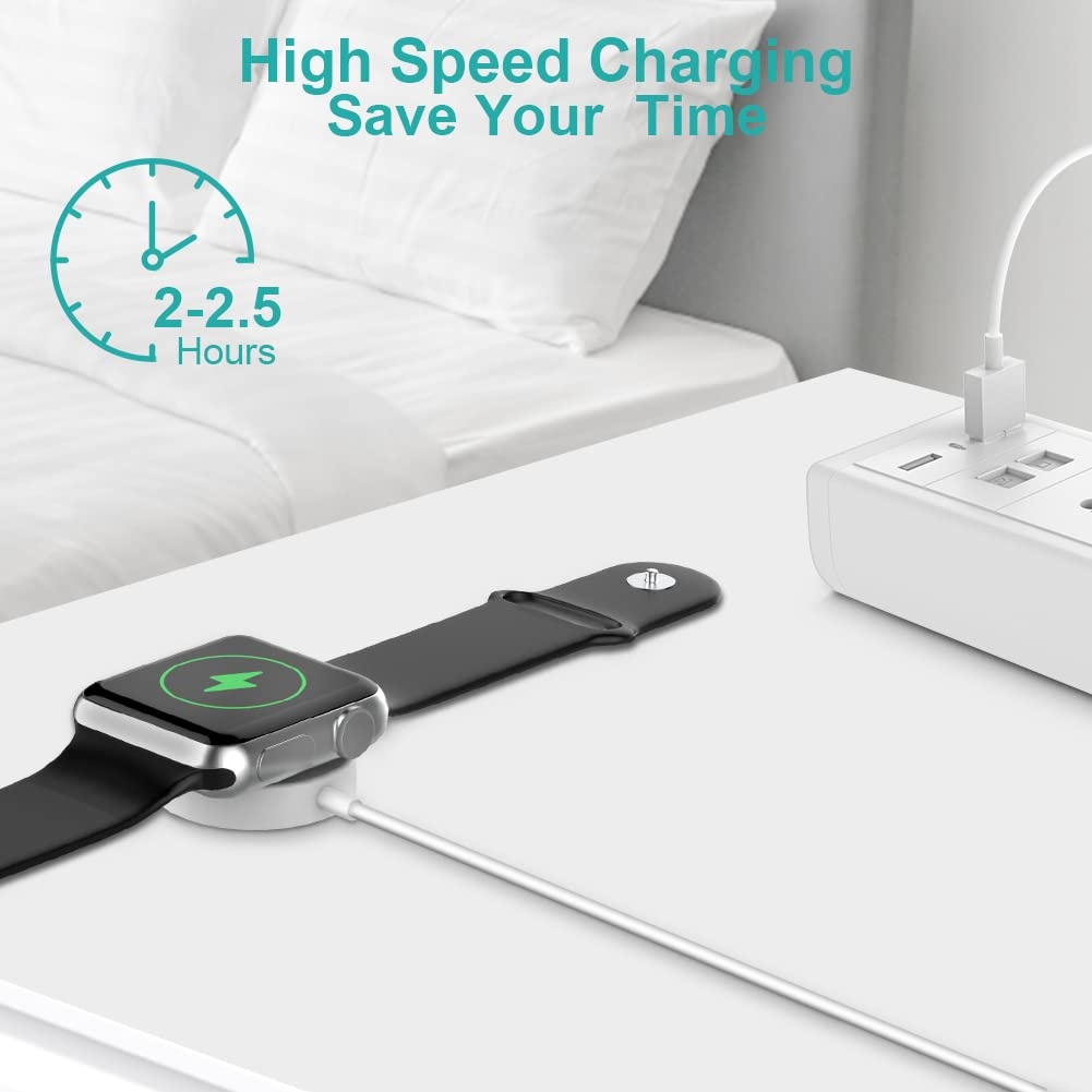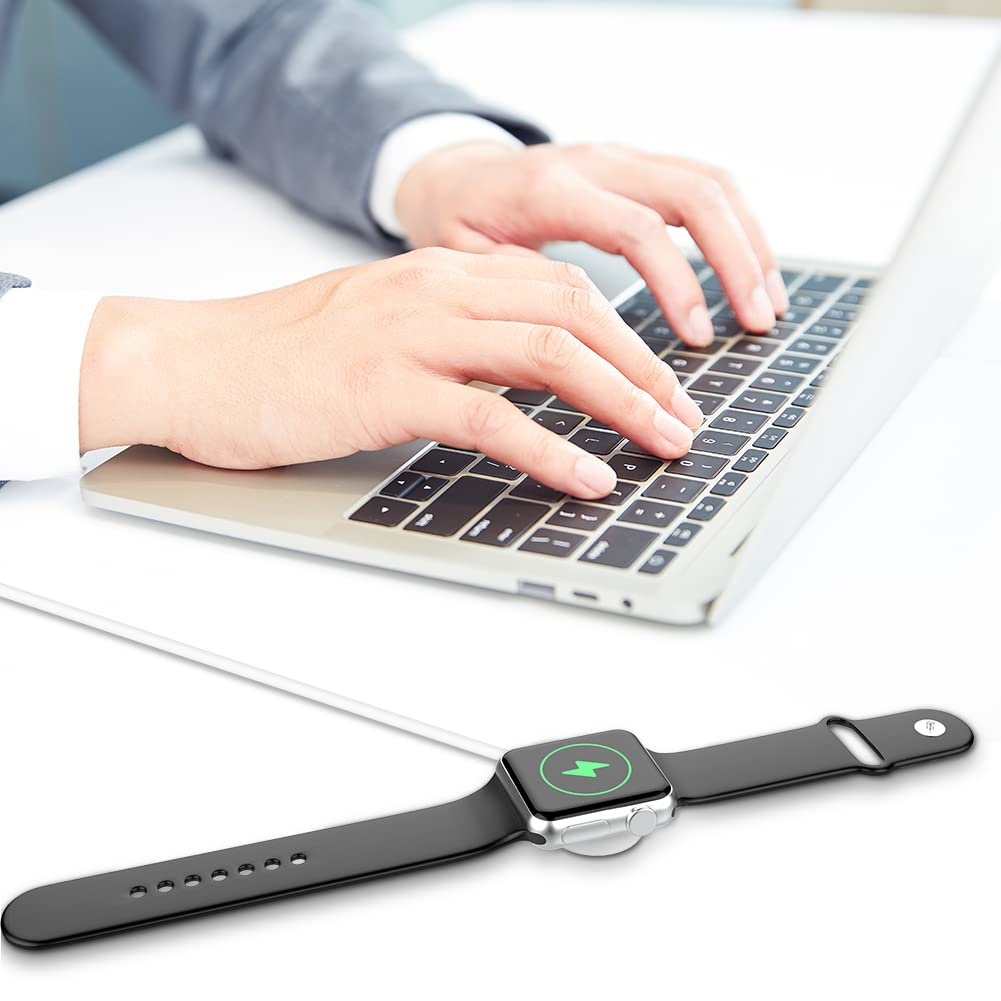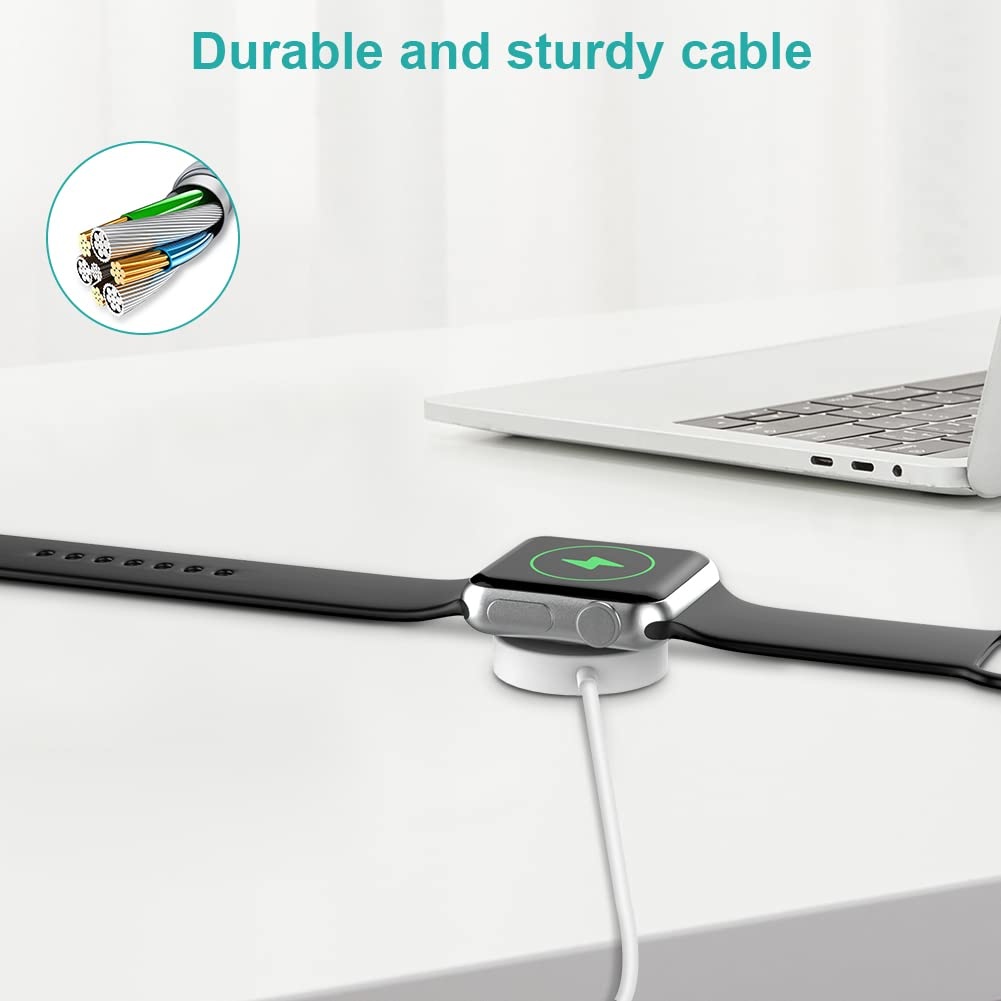 De Universele Magnetische Apple Watch Kabel voor Draadloos Opladen is een hoogwaardige Oplaadkabel, waarmee je alle Apple Watch types draadloos op kan laden en je jouw Apple Watch een vast en veilig plekje op je bureau of nachtkastje kan geven door hem neer te leggen op het magnetische laadoppervlak!