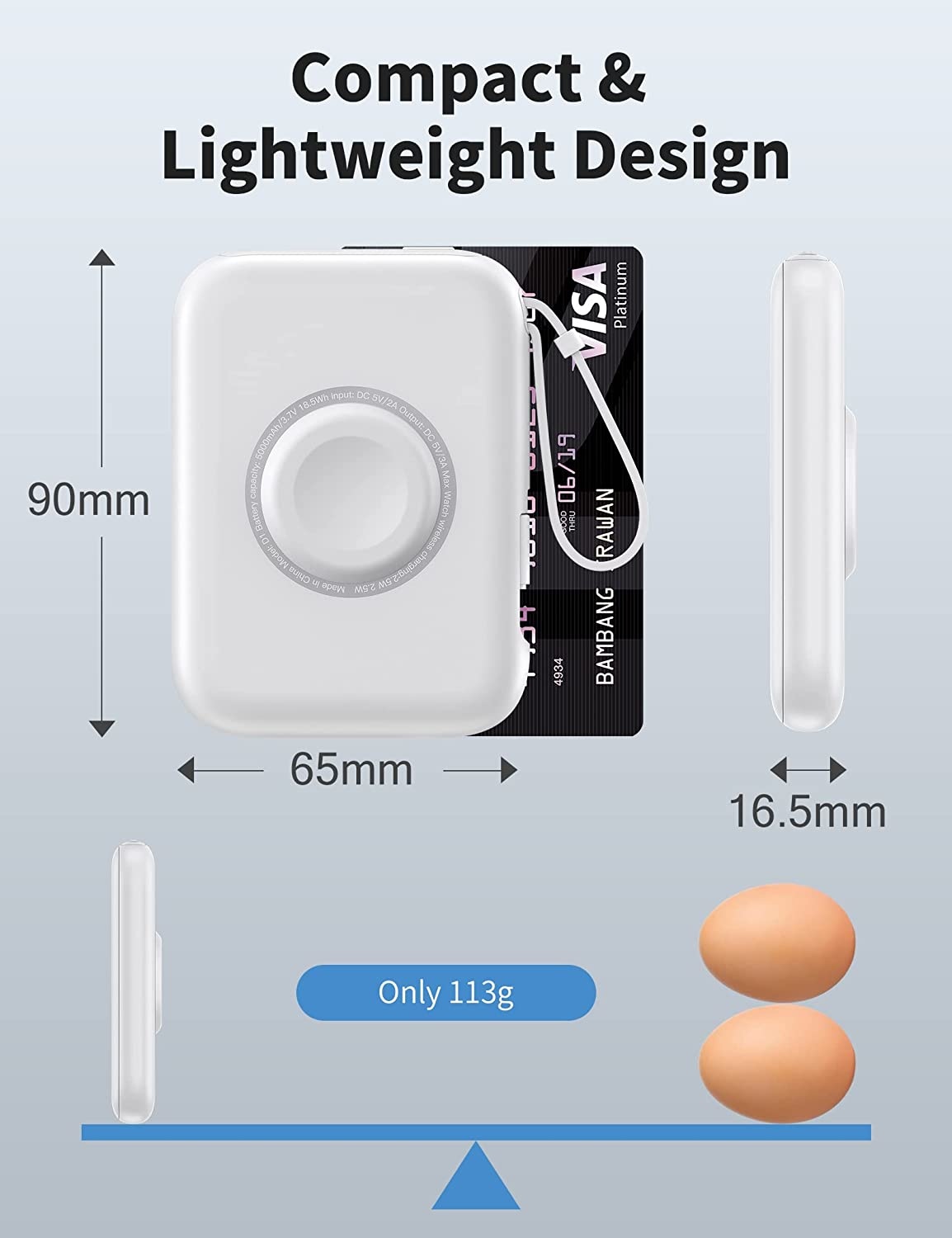 Het magnetische ontwerp van deze powerbank maakt het gemakkelijk om je Apple Watch op te laden zonder kabels of aansluitingen. Het enige wat je hoeft te doen is de magnetische oplaadmodule van je Apple Watch op de juiste plek op de powerbank te plaatsen en het opladen begint automatisch.