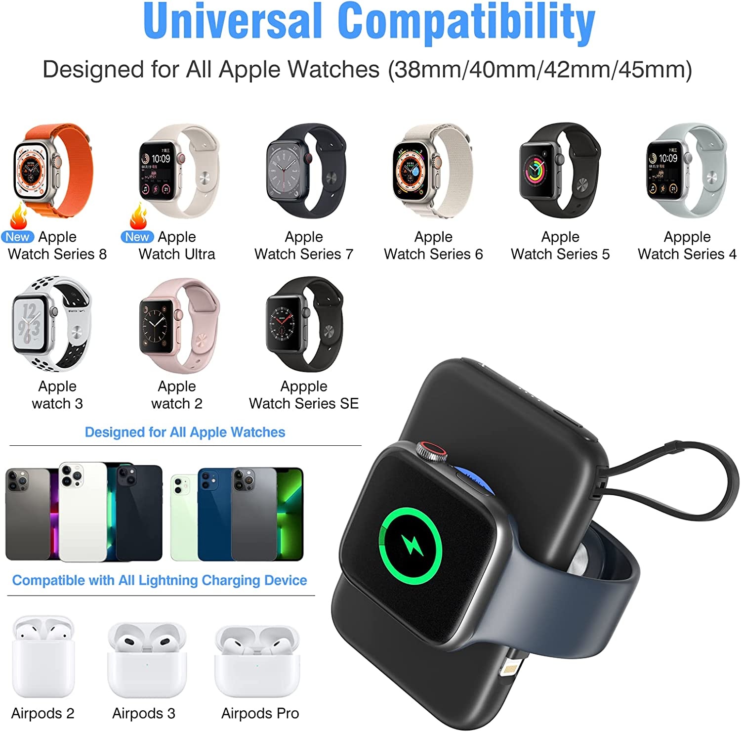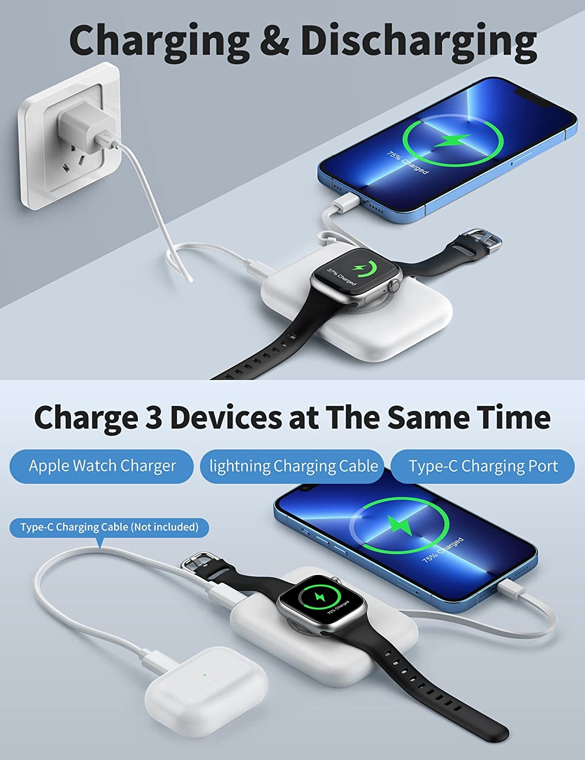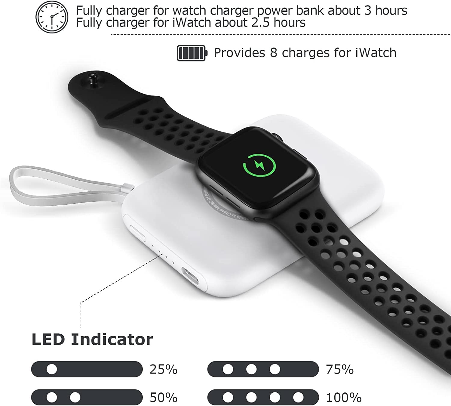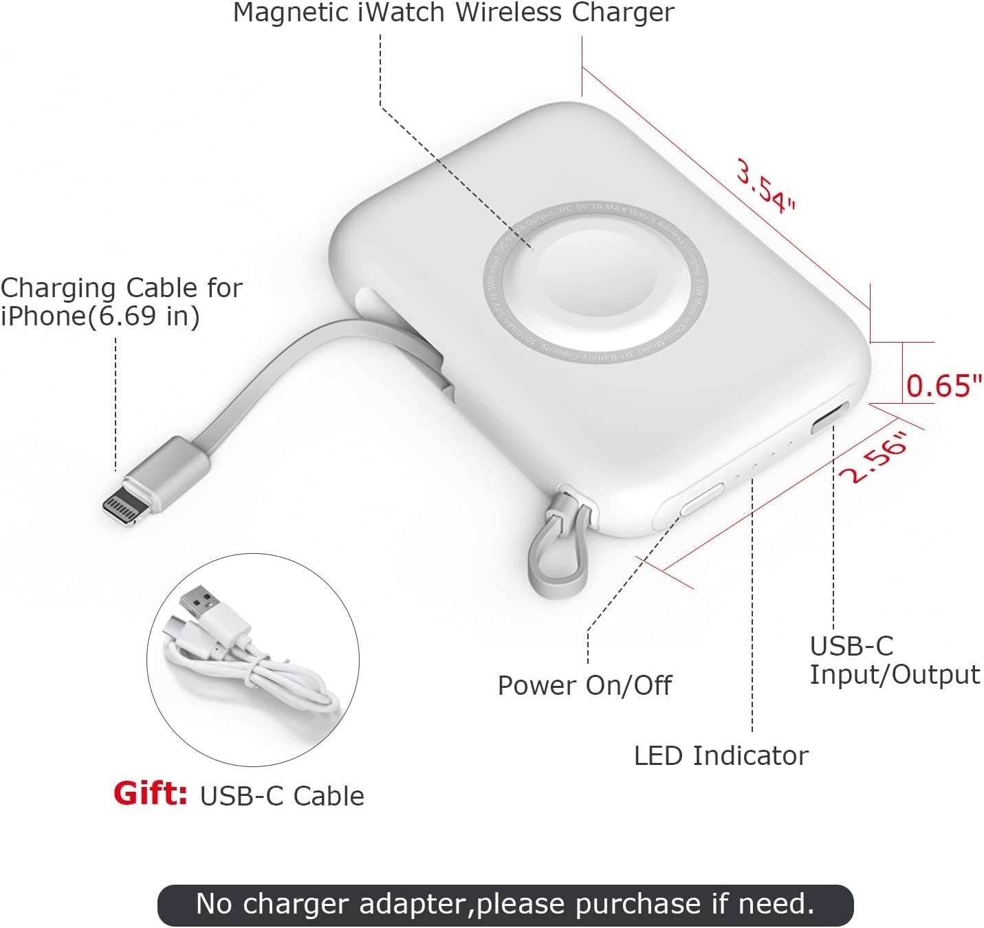 Met een capaciteit van 5000 mAh kan deze powerbank je Apple Watch en Geschikt voor iPhone meerdere keren opladen voordat hij zelf opgeladen moet worden. De ingebouwde lightning kabel maakt het gemakkelijk om je Geschikt voor iPhone op te laden zonder dat je een extra kabel hoeft mee te nemen.