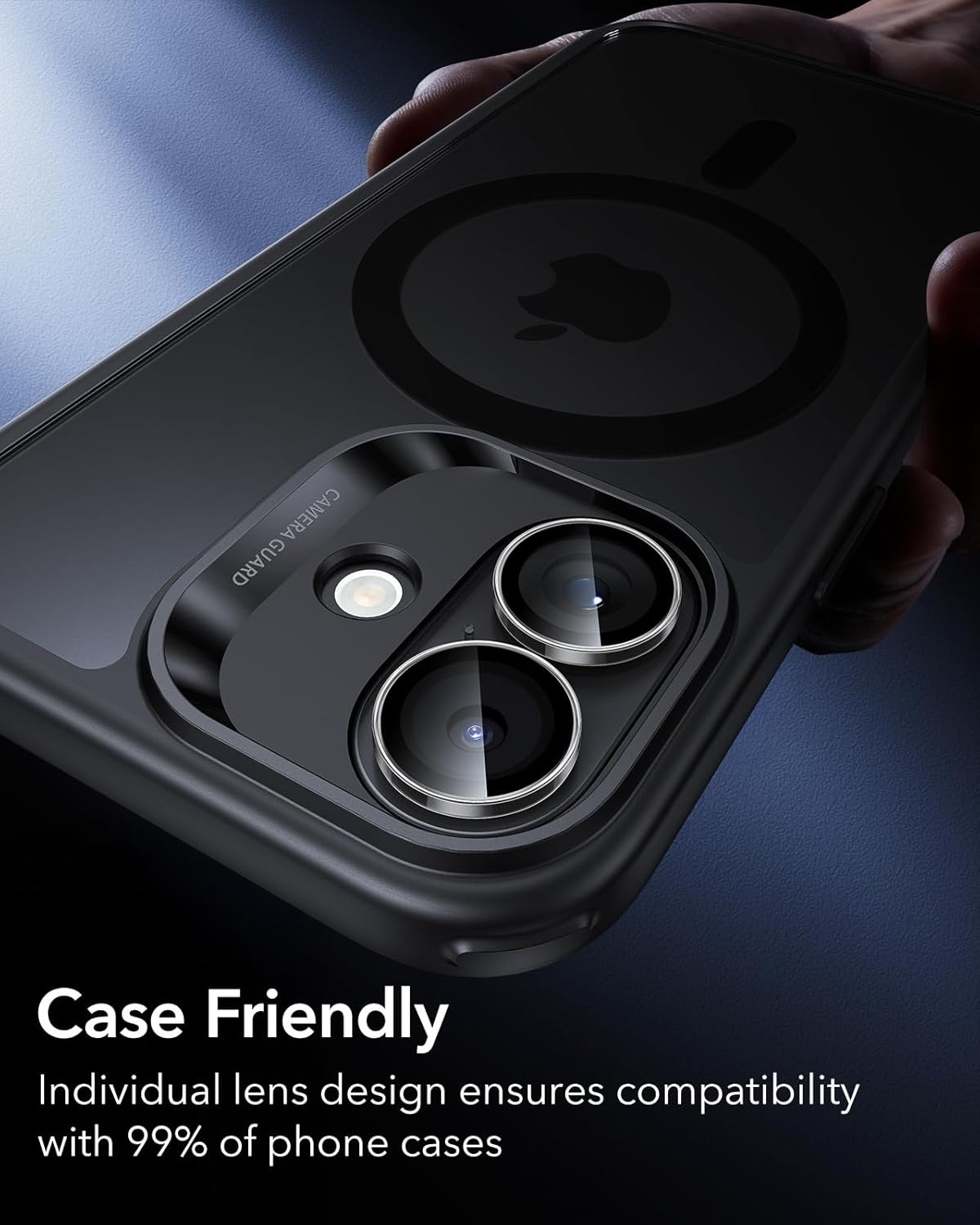 De lensbeschermer is omgeven door een stevig metalen frame dat zorgt voor extra stootvastheid én een luxe afwerking die perfect aansluit bij het ontwerp van je iPhone. -