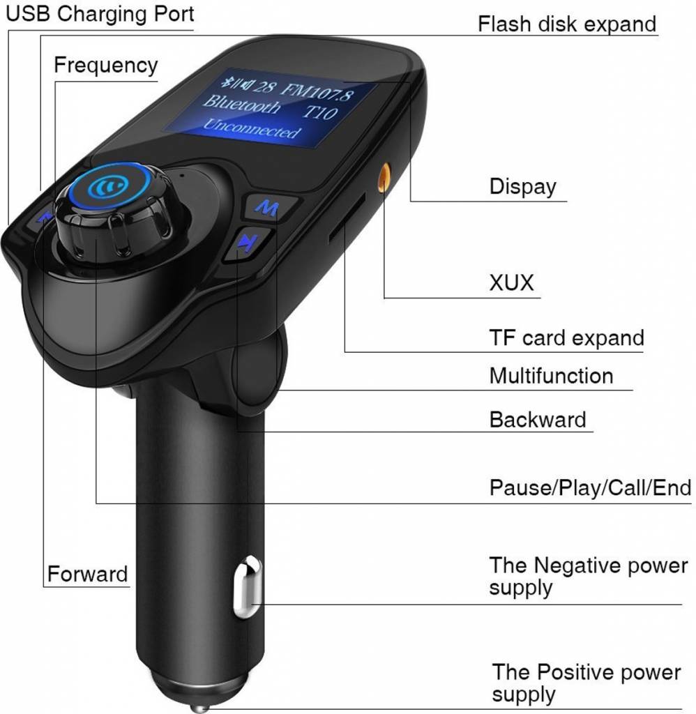Draadloze Bluetooth Carkit met LED Display T11 inclusief FM transmitter / Display / Handsfree bellen / USB Oplader / MP3 speler
