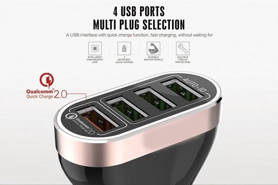 - 3 x USB-oplaadpoorten + 1 x Quick Charge 2.0-poort, meerdere stekkerselectie