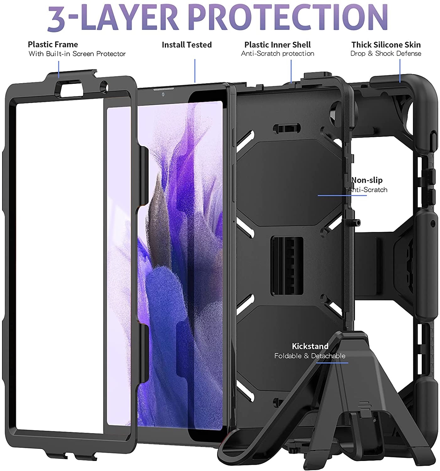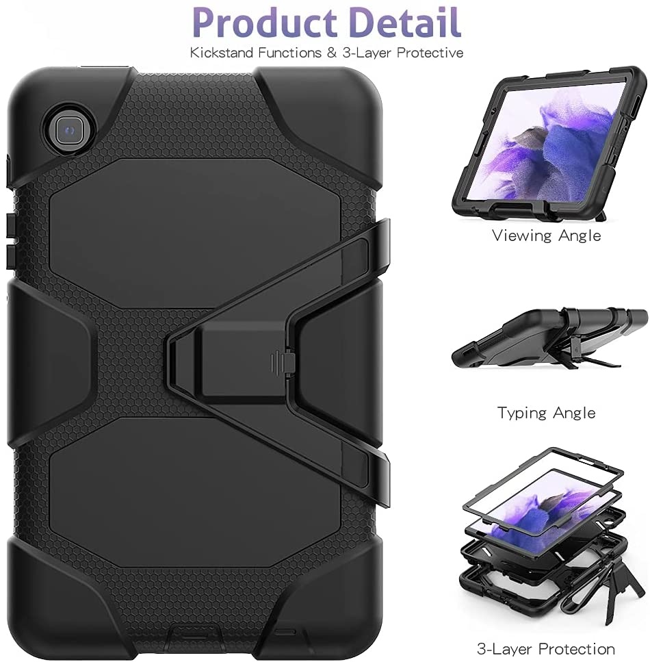 Extreme protectie Army Backcover hoes voor Hoes Geschikt voor Samsung Galaxy Tab A7 Lite Hoes Schokbestendige Stevige Hoes case T220 - Zwart