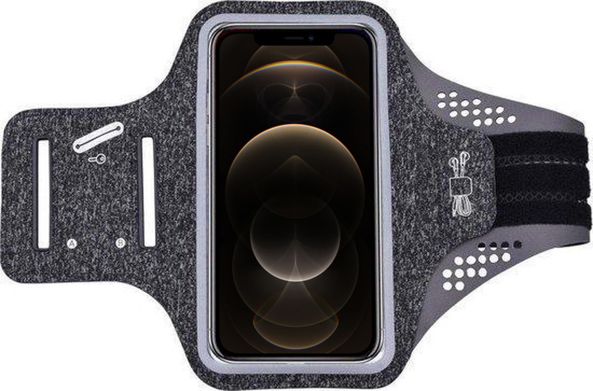 Geschikt voor iPhone 12 Pro hardloop telefoonhouder – armband - sportband - van stof - Zwart