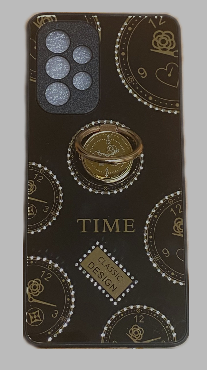 Hoesje Geschikt Voor Samsung Galaxy A53 hoesje Glitter Sparkel Diamond crystal met Horloge print en Ring Houder Zachte Siliconen Bumper – Zwart