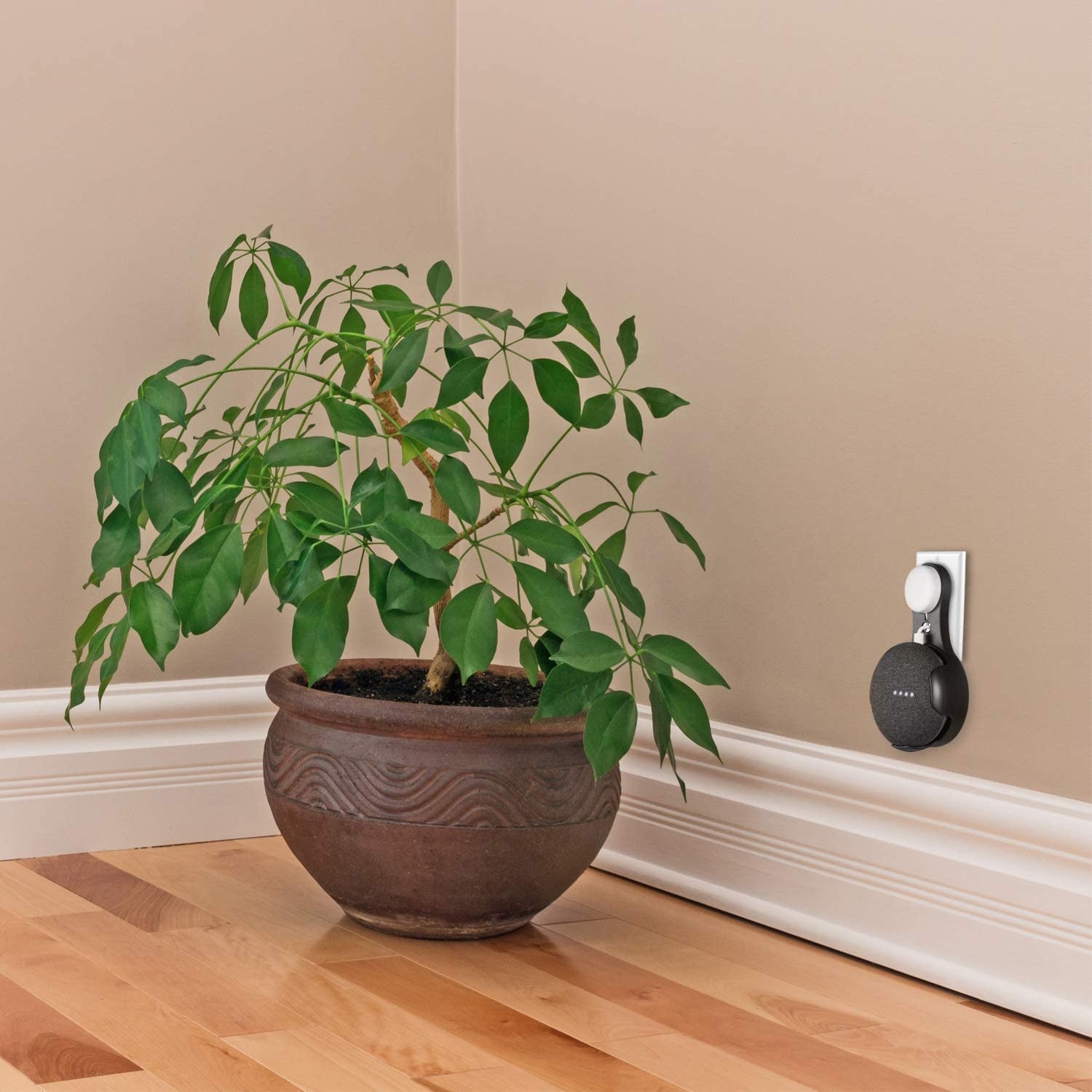 De Ntech Google home mini muurhouder elegant en strak aan de muur in huis. Eenvoudig te plaatsen doormiddel van plug & play.