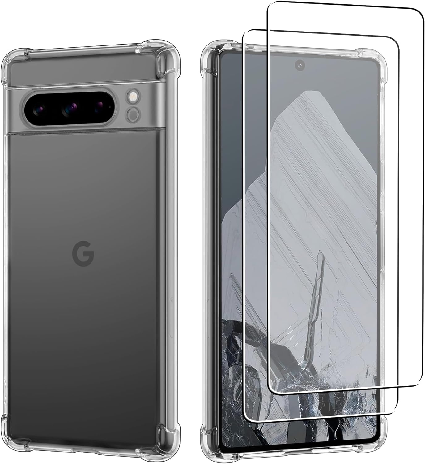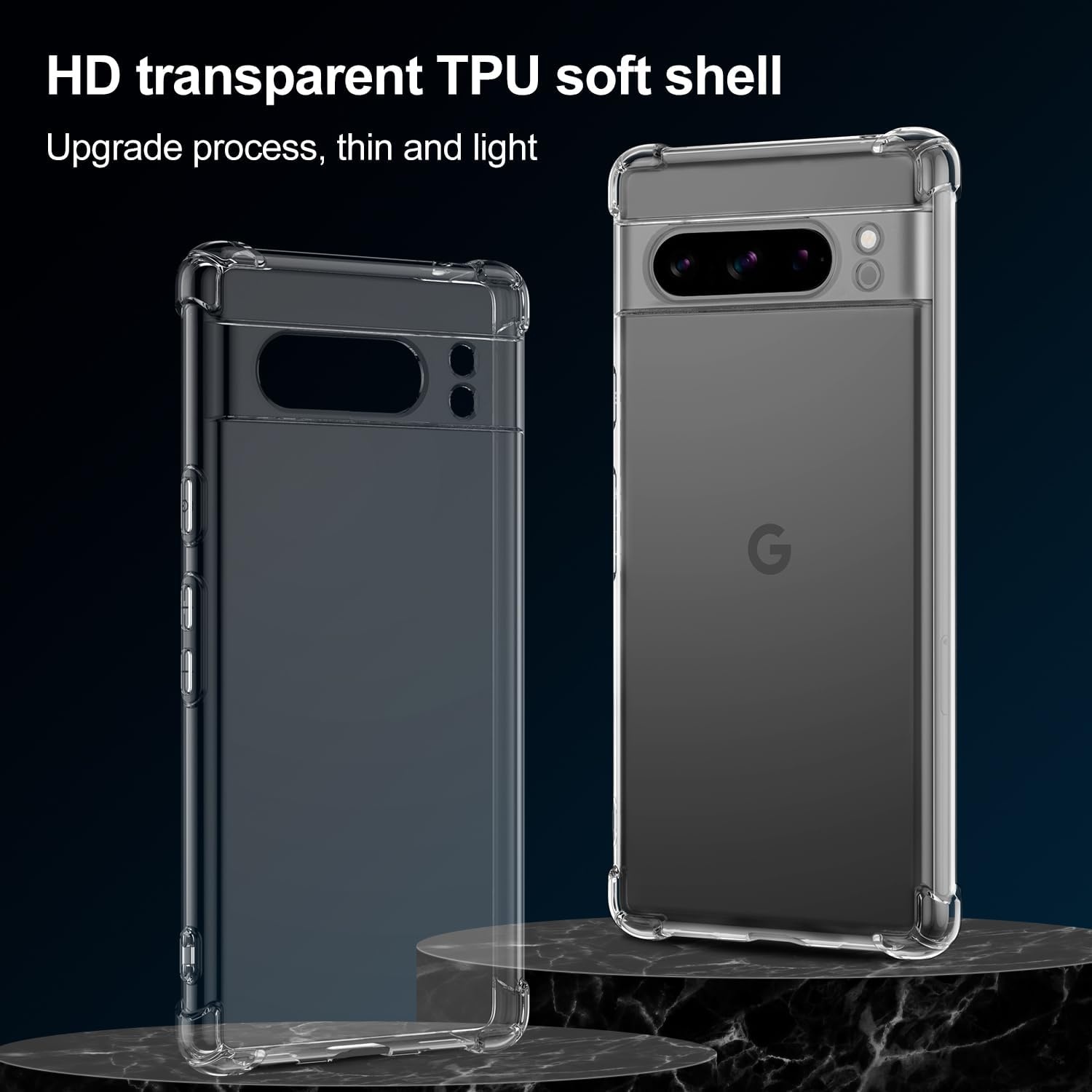 Bescherm je Google Pixel 8 Pro met ons transparante siliconen hoesje en gehard glas screenprotectors!