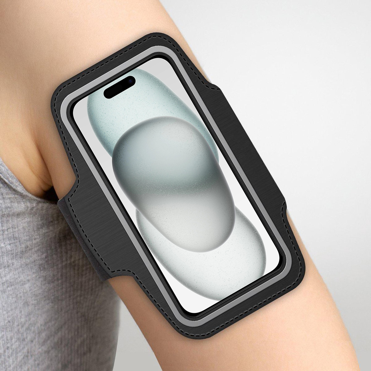 Hardloop telefoonhouder Geschikt voor iPhone 15 Plus - Sportarmband - Reflecterend -Ruimte voor sleutel - Zwart