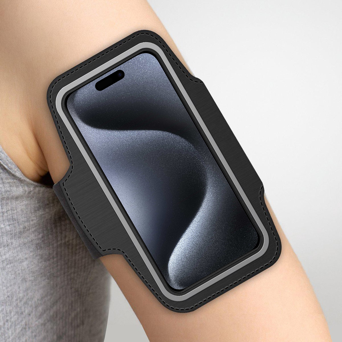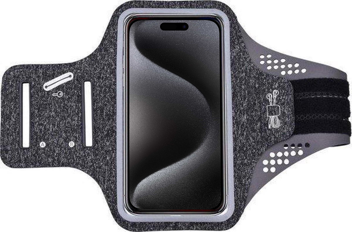 Hardloop telefoonhouder Geschikt voor iPhone 15 Pro - Sportarmband - Reflecterend -Ruimte voor sleutel - Zwart