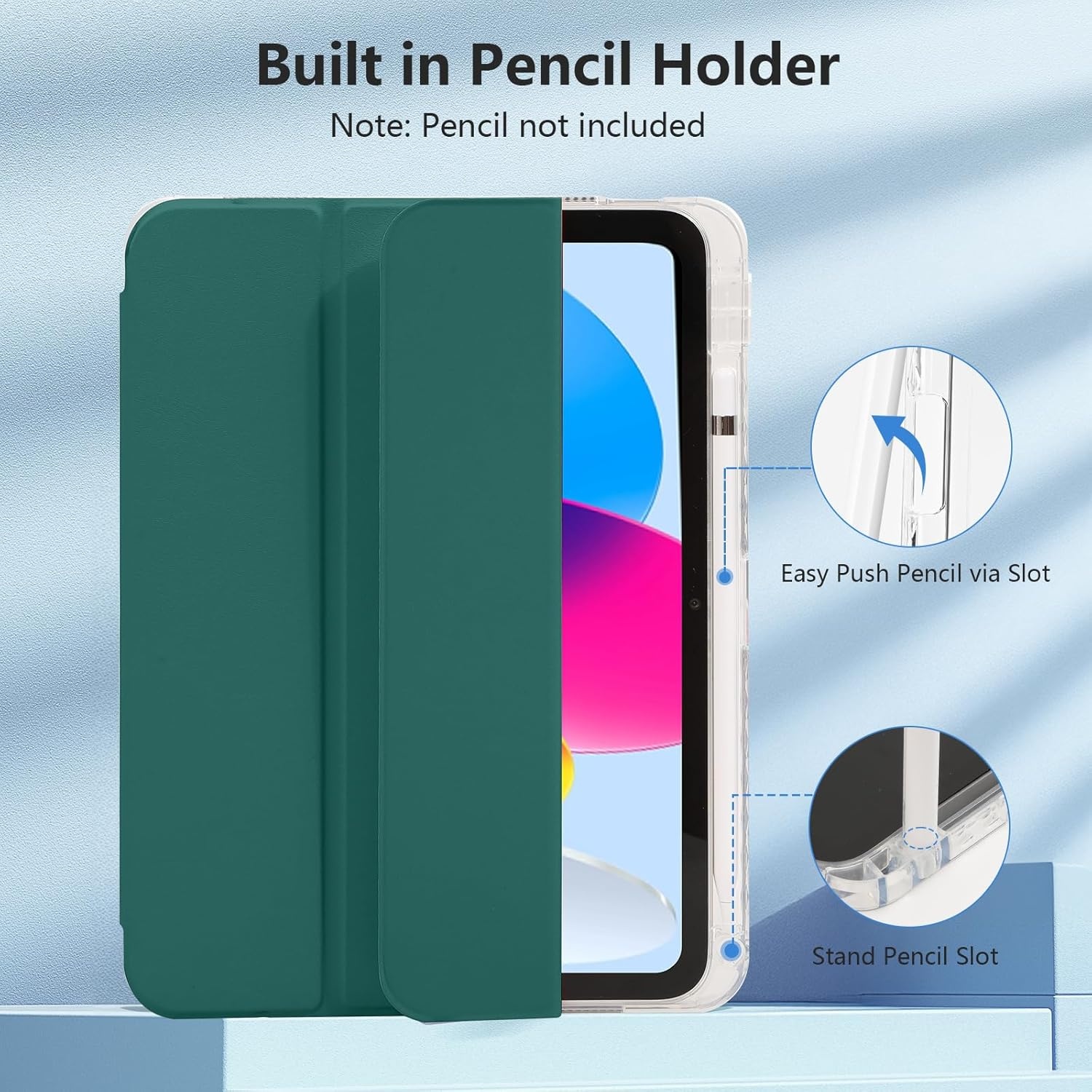 Hoes geschikt voor iPad 2025 hoes Pine Groen - iPad A16 hoes 11th Generation hoes - iPad 2022 hoes Smart Case met Harde Doorzichtige Achterkant en Pencil Slot