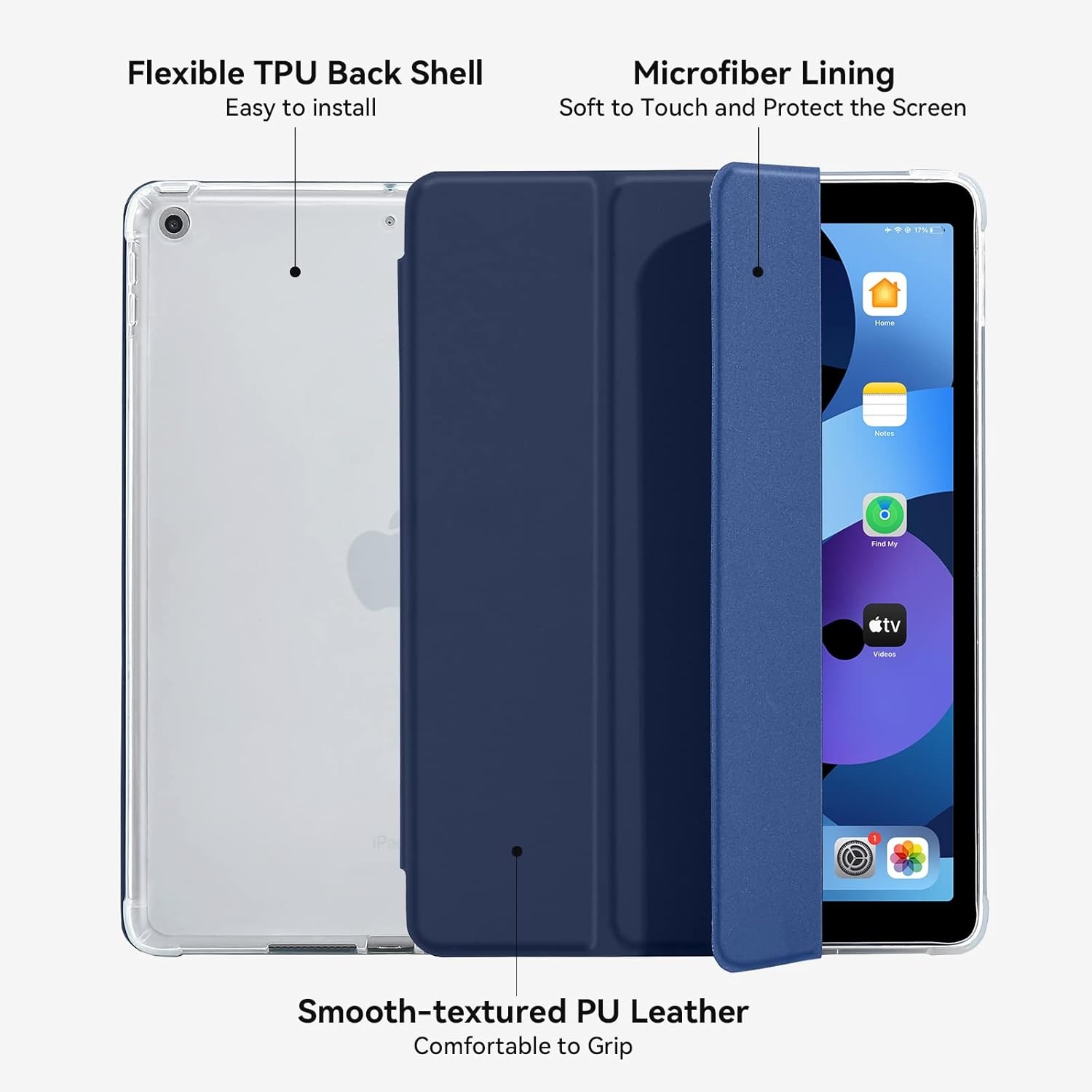 Hoes geschikt voor iPad 2021 hoes Donker Blauw - Tablet hoes iPad 9/8/7 10.2 inch (9e generatie 2021 / 8e generatie 2020 / 7e generatie 2019) - hoes Smart Case met Harde Doorzichtige Achterkant en Pencil Slot
