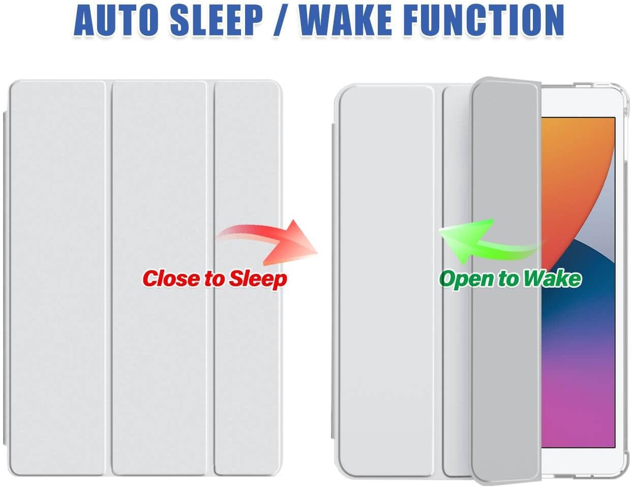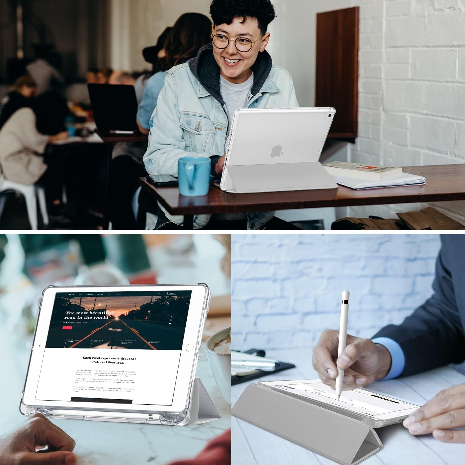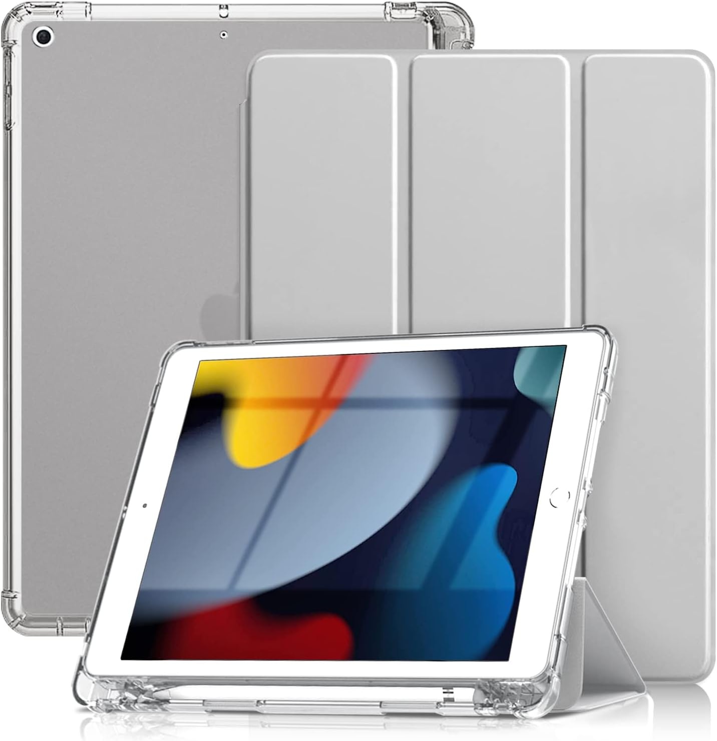 Hoes geschikt voor iPad 2021 hoes Grijs - Tablet hoes iPad 9/8/7 10.2 inch (9e generatie 2021 / 8e generatie 2020 / 7e generatie 2019) - hoes Smart Case met Harde Doorzichtige Achterkant en Pencil Slot