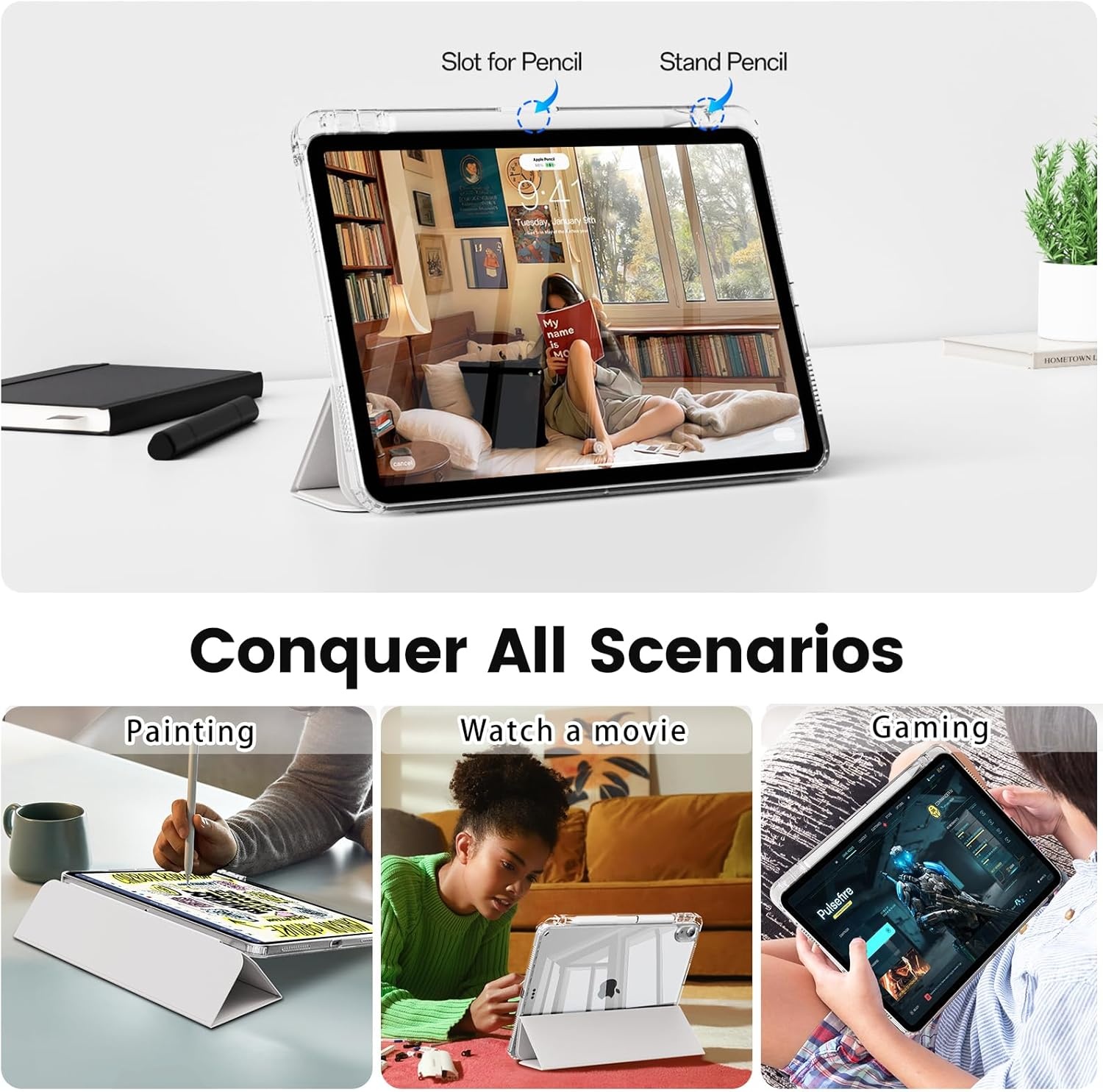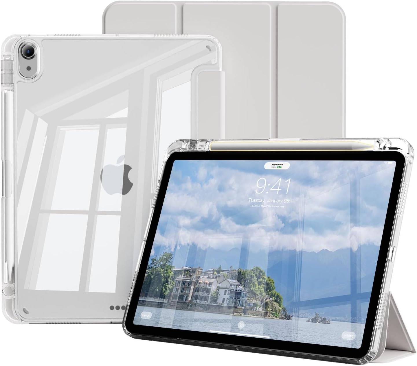Hoes Geschikt voor iPad Air 2025 Grijs hoes Smart Case met Harde Doorzichtige Achterkant en Pencil Slot - ipad air 11 inch hoes - iPad Pro 11 Inch 2022/2021/2020/2018/ iPad Air 5th/4th Generation Tri Fold Tablet