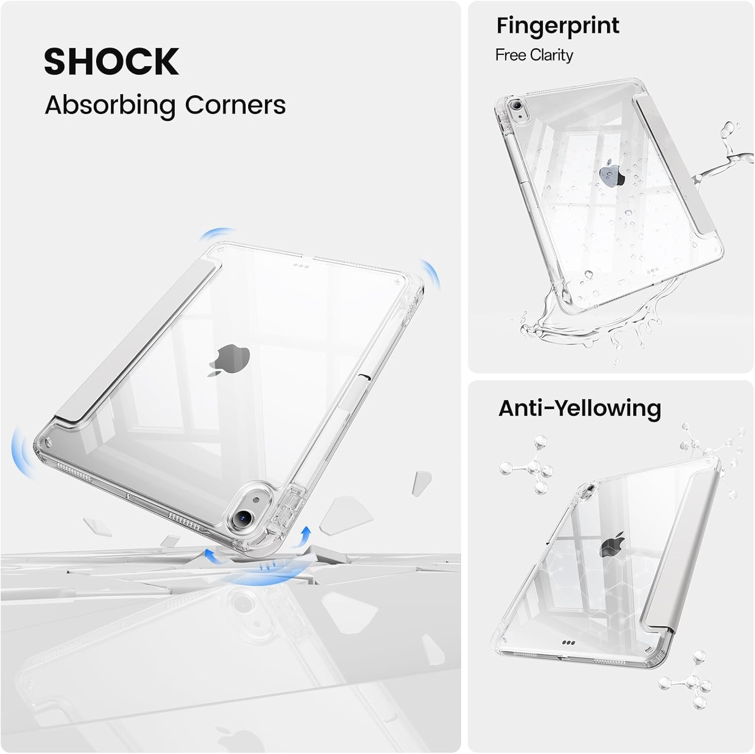 De harde, doorzichtige achterkant biedt betrouwbare bescherming tegen krassen, stoten en alledaagse slijtage, terwijl het originele design van je iPad zichtbaar blijft. De versterkte, schokbestendige hoeken minimaliseren het risico op schade bij valpartijen, zodat je met een gerust hart kunt werken, leren of ontspannen.