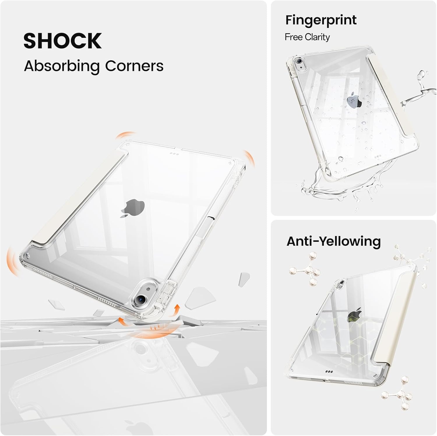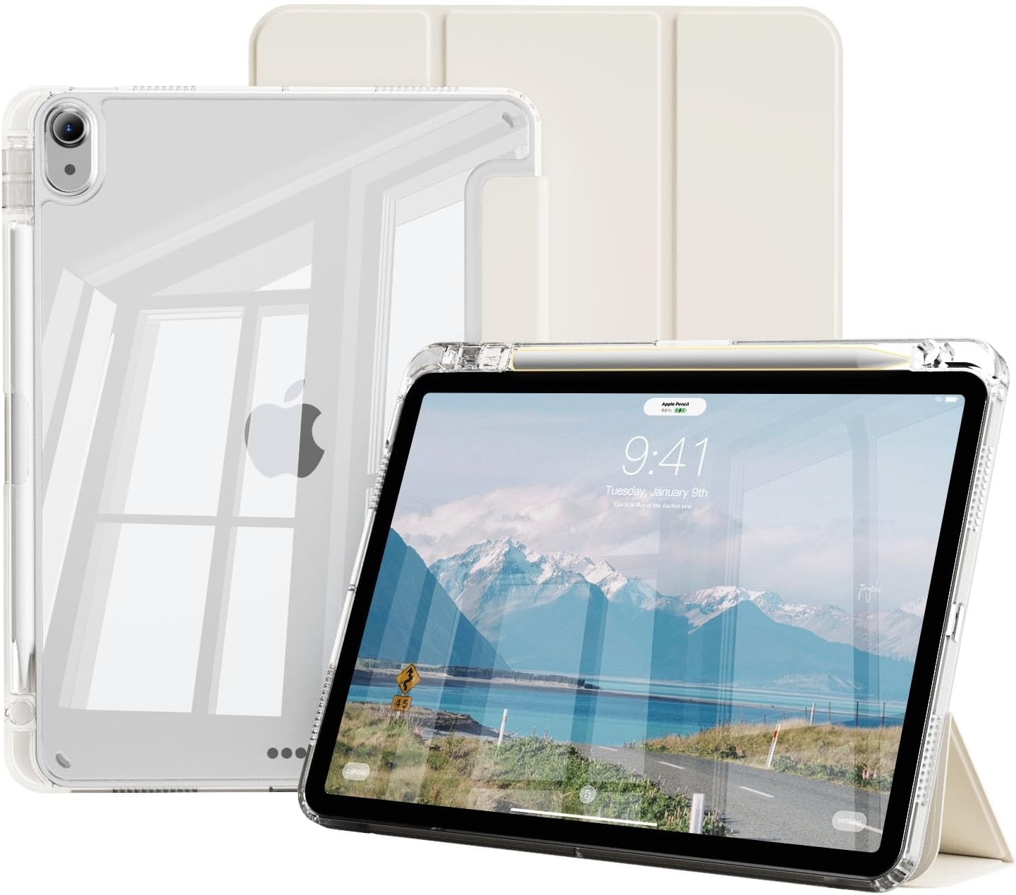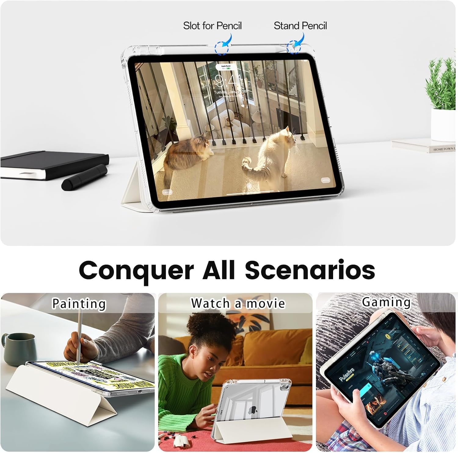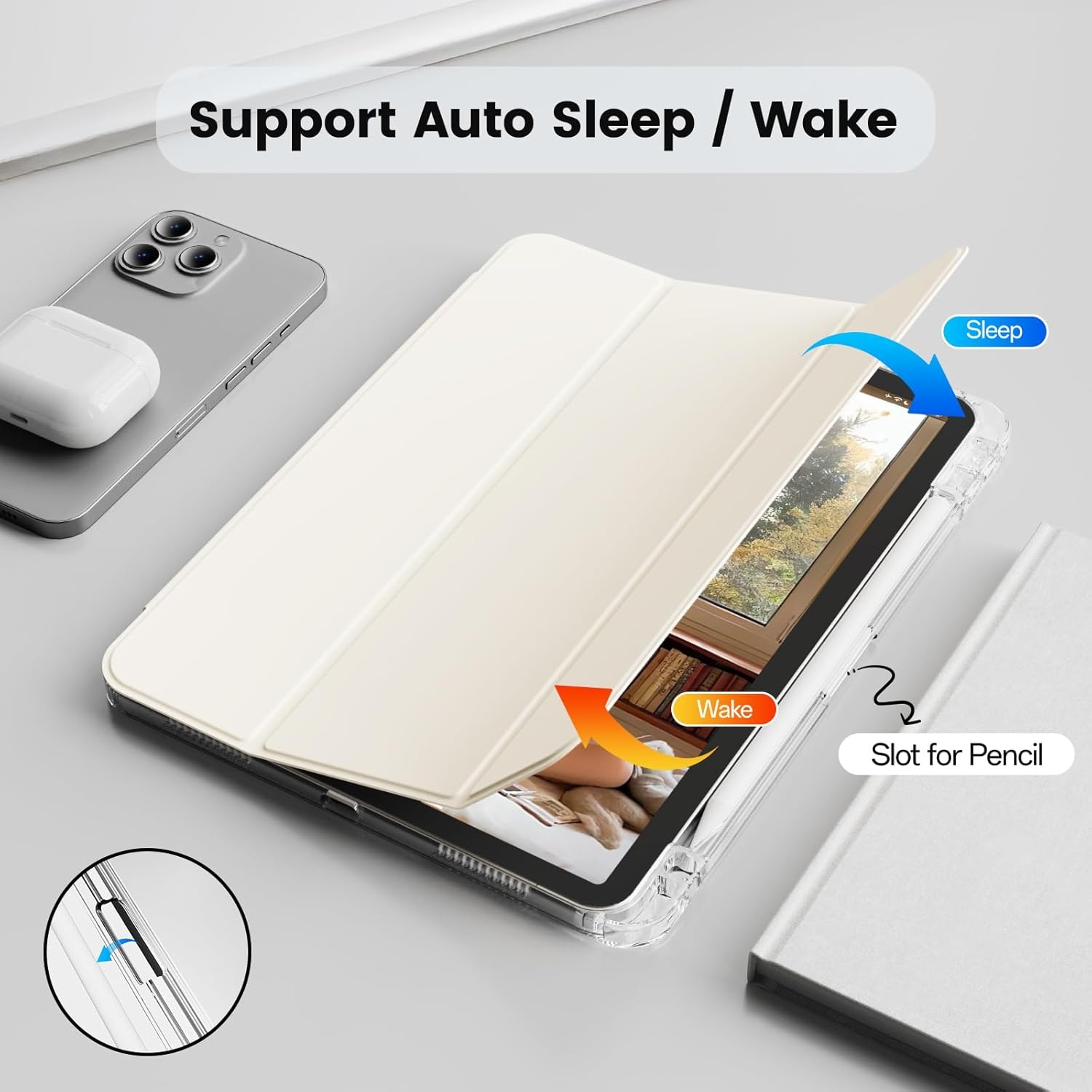 Hoes Geschikt voor iPad Air 2025 Wit hoes Smart Case met Harde Doorzichtige Achterkant en Pencil Slot - ipad air 11 inch hoes - iPad Pro 11 Inch 2022/2021/2020/2018/ iPad Air 5th/4th Generation Tri Fold Tablet