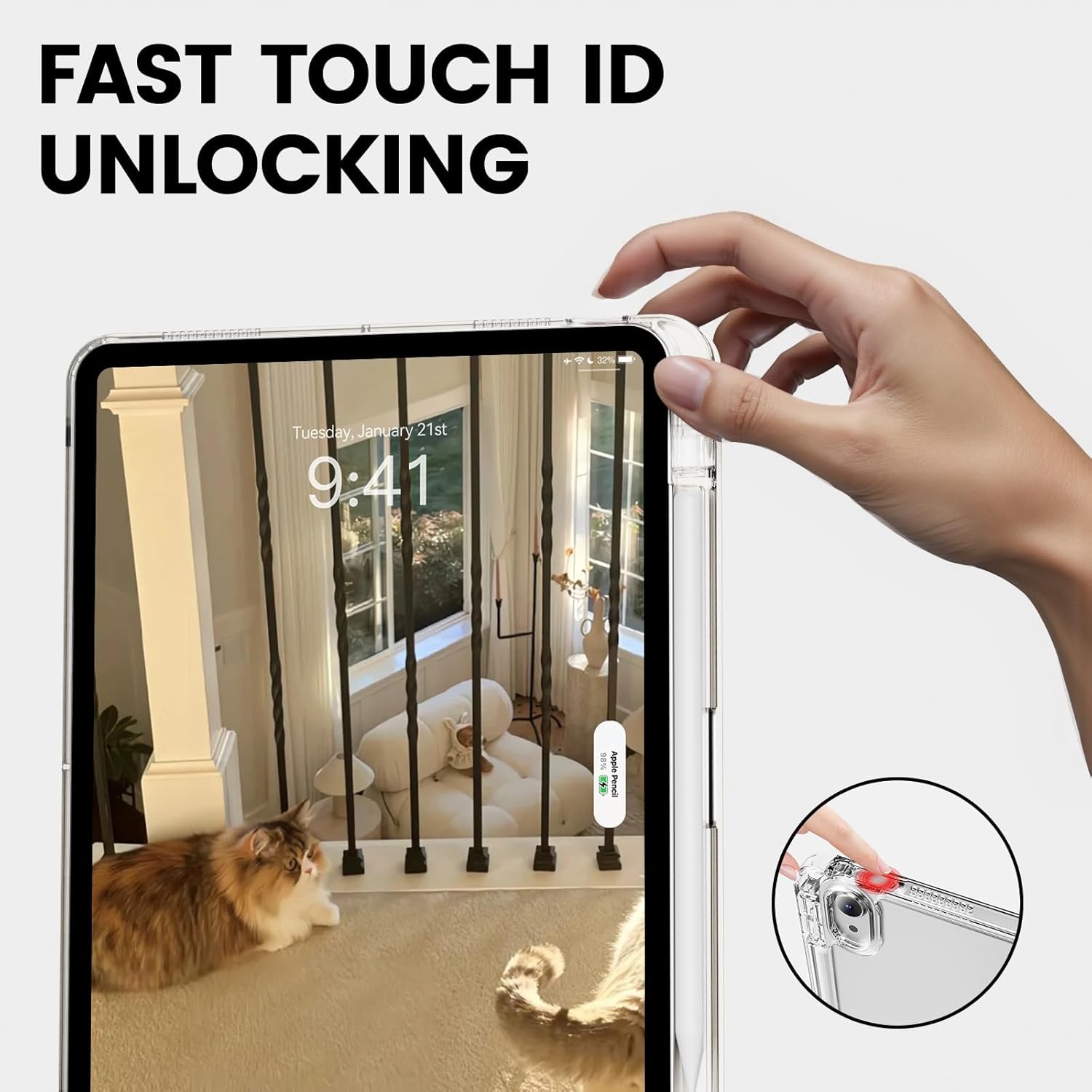 De harde, doorzichtige achterkant biedt betrouwbare bescherming tegen krassen, stoten en alledaagse slijtage, terwijl het originele design van je iPad zichtbaar blijft. De versterkte, schokbestendige hoeken minimaliseren het risico op schade bij valpartijen, zodat je met een gerust hart kunt werken, leren of ontspannen.