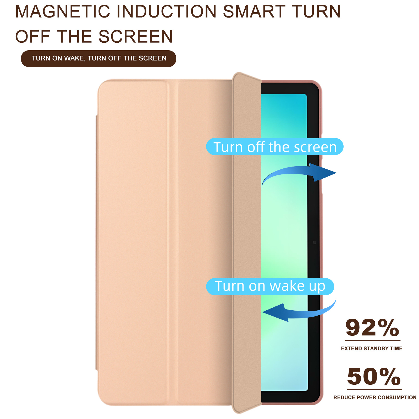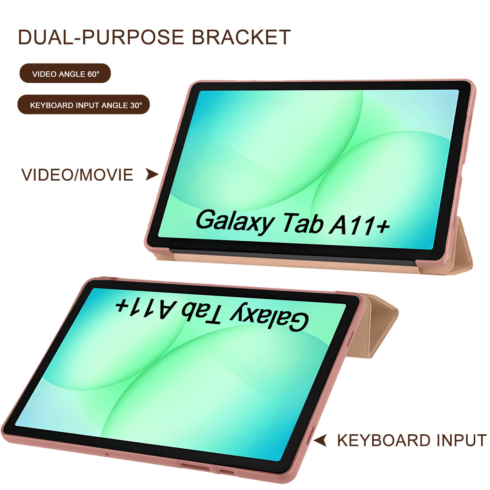 Hoes Geschikt voor Samsung Galaxy Tab A11 Plus hoes Rose Goud – Tablet hoes tri-fold bookcase met auto/wake functie