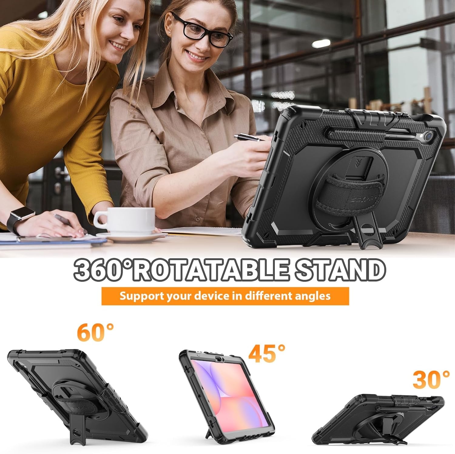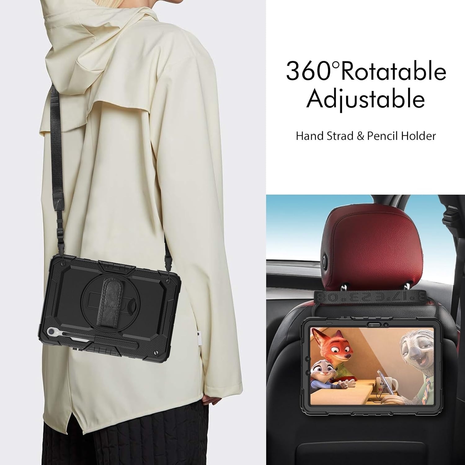Hoes met ingebouwde Screenprotector Geschikt voor Samsung Galaxy Tab S10 Lite / S10 FE / S9 FE / S9 5G (10.9''/11'') hoes Extreme Armor met screenprotector, Schouderiem, Handriem en Pencilhouder hoes - voor Horeca en Bouw - Zwart