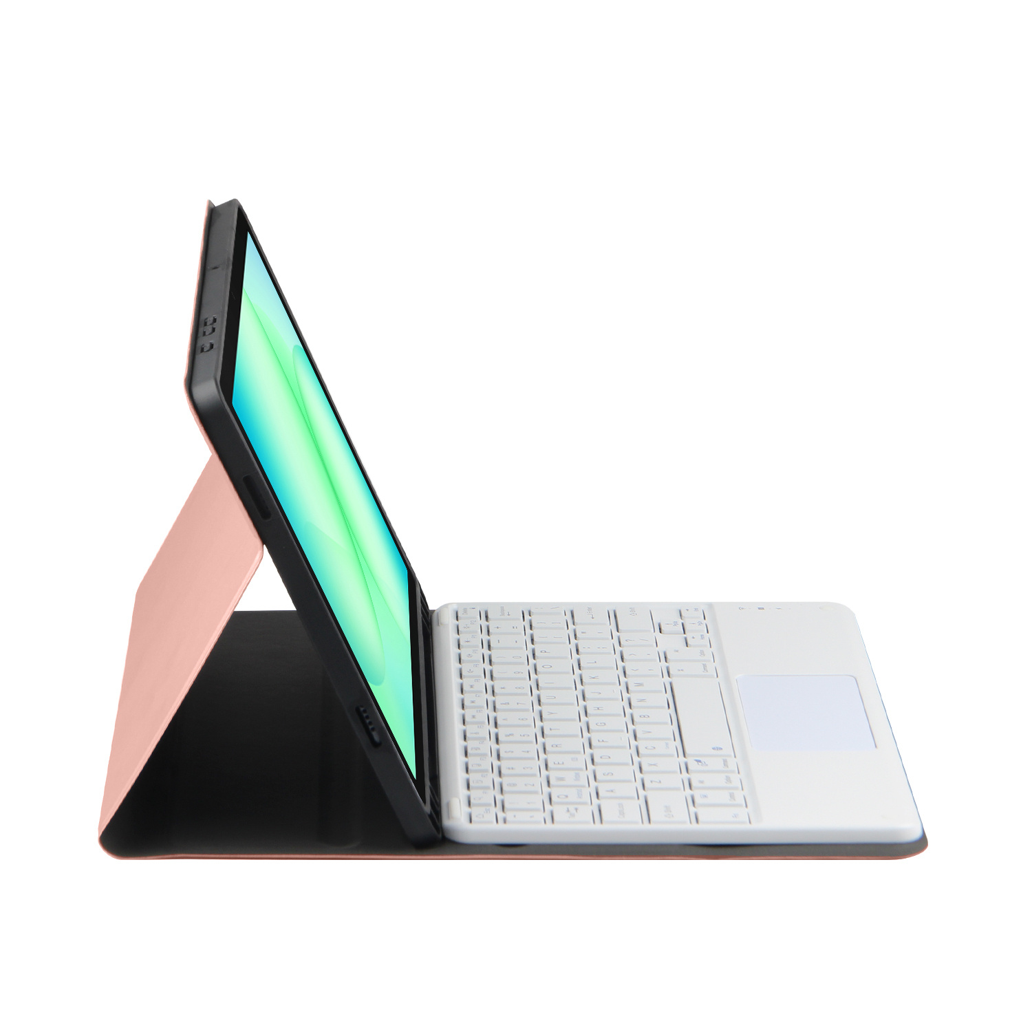 Afneembare toetsenbordbehuizing met een Bluetooth-toetsenbord en standaard maakt het werken met de Samsung tablet erg handig, omdat u de Samsung tablet in een mini-laptop verandert. Hierdoor blijft er meer ruimte over op het scherm van je Samsung Tab A9 Plus / A11 Plus 10 2023 . Met het afneembare toetsenbord kun je de afstand tot je tablet variëren en thuis laten wanneer je hem niet nodig hebt.
