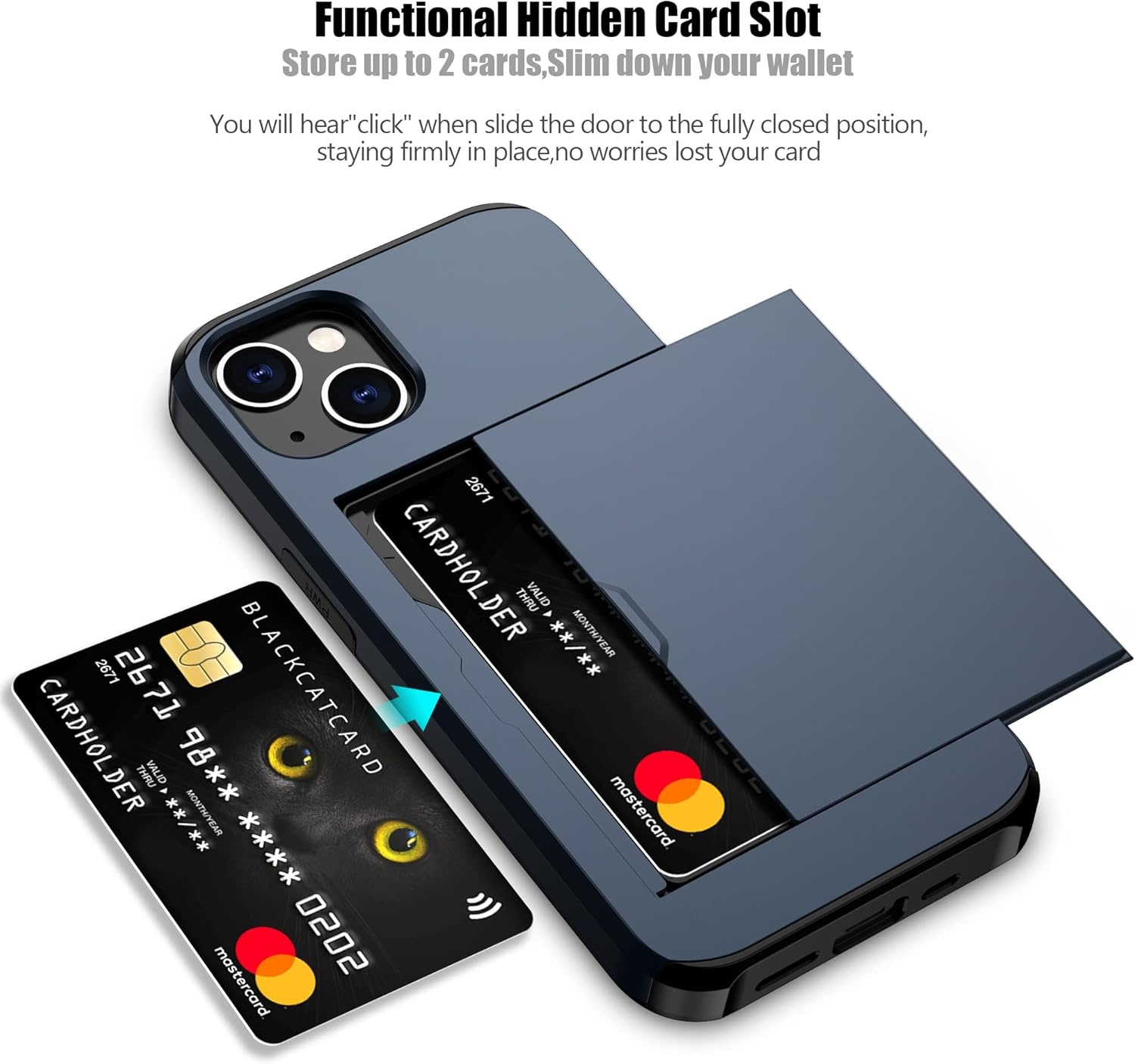 Nauwkeurige uitsparing: De uitsparing past precies bij elke knop, camera, luidsprekers en poorten, gemakkelijk in te drukken en te openen. Pakket bevat één telefoonhoesje met creditcardhouder ALLEEN compatibel met iPhone 13.