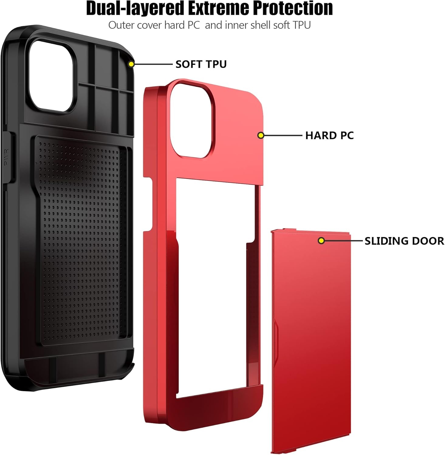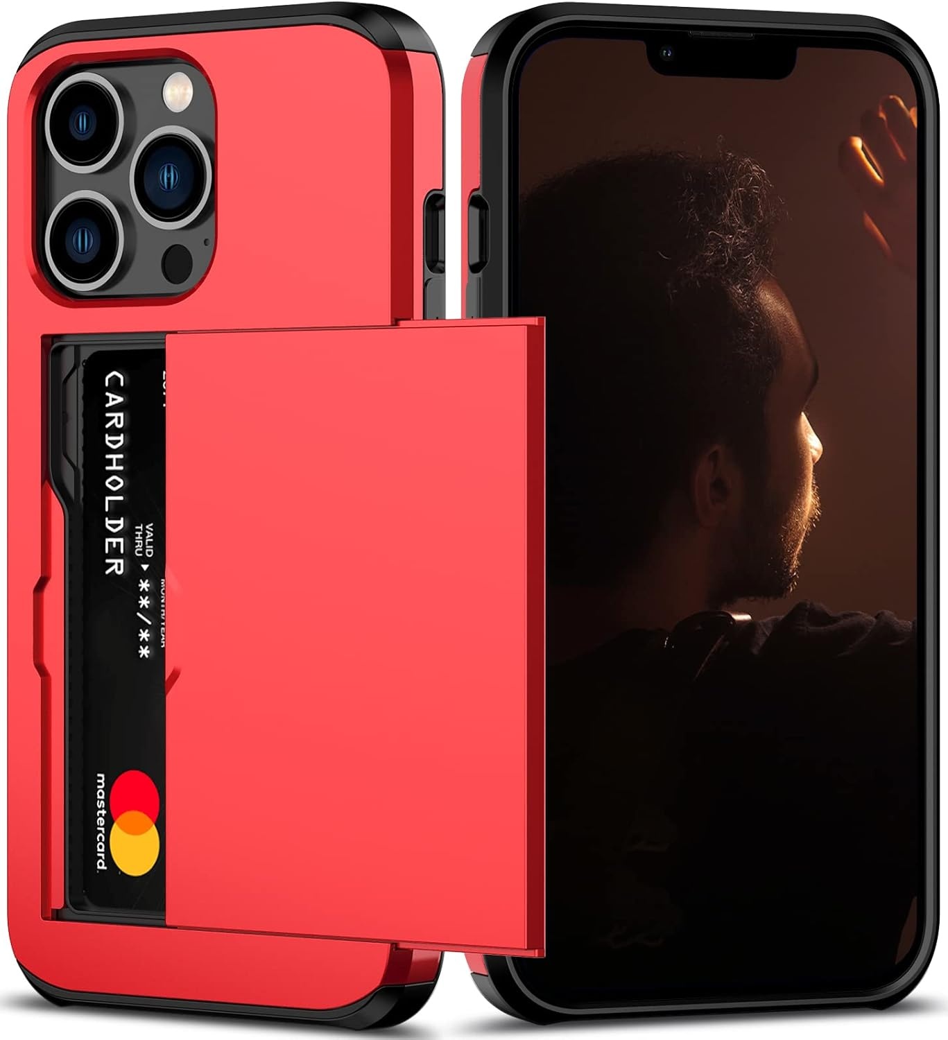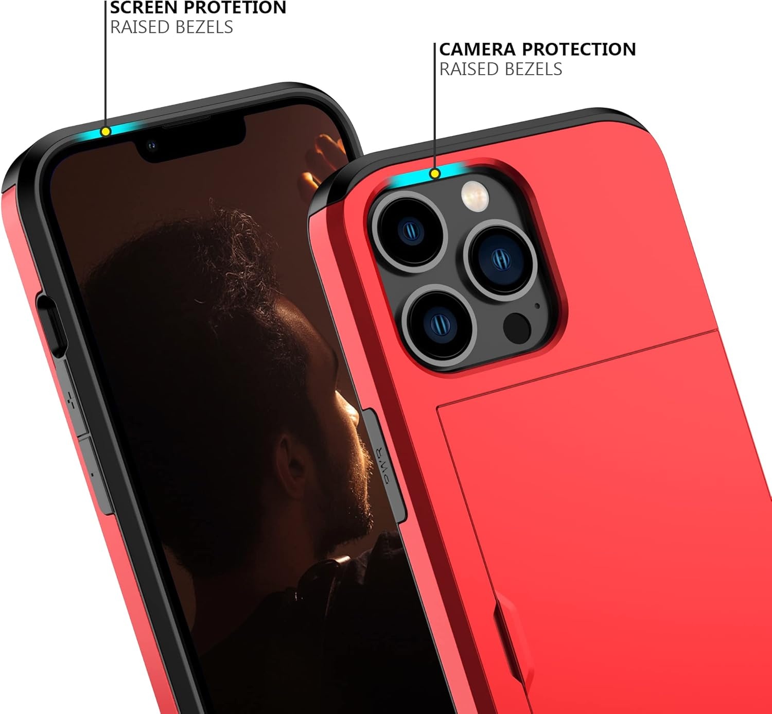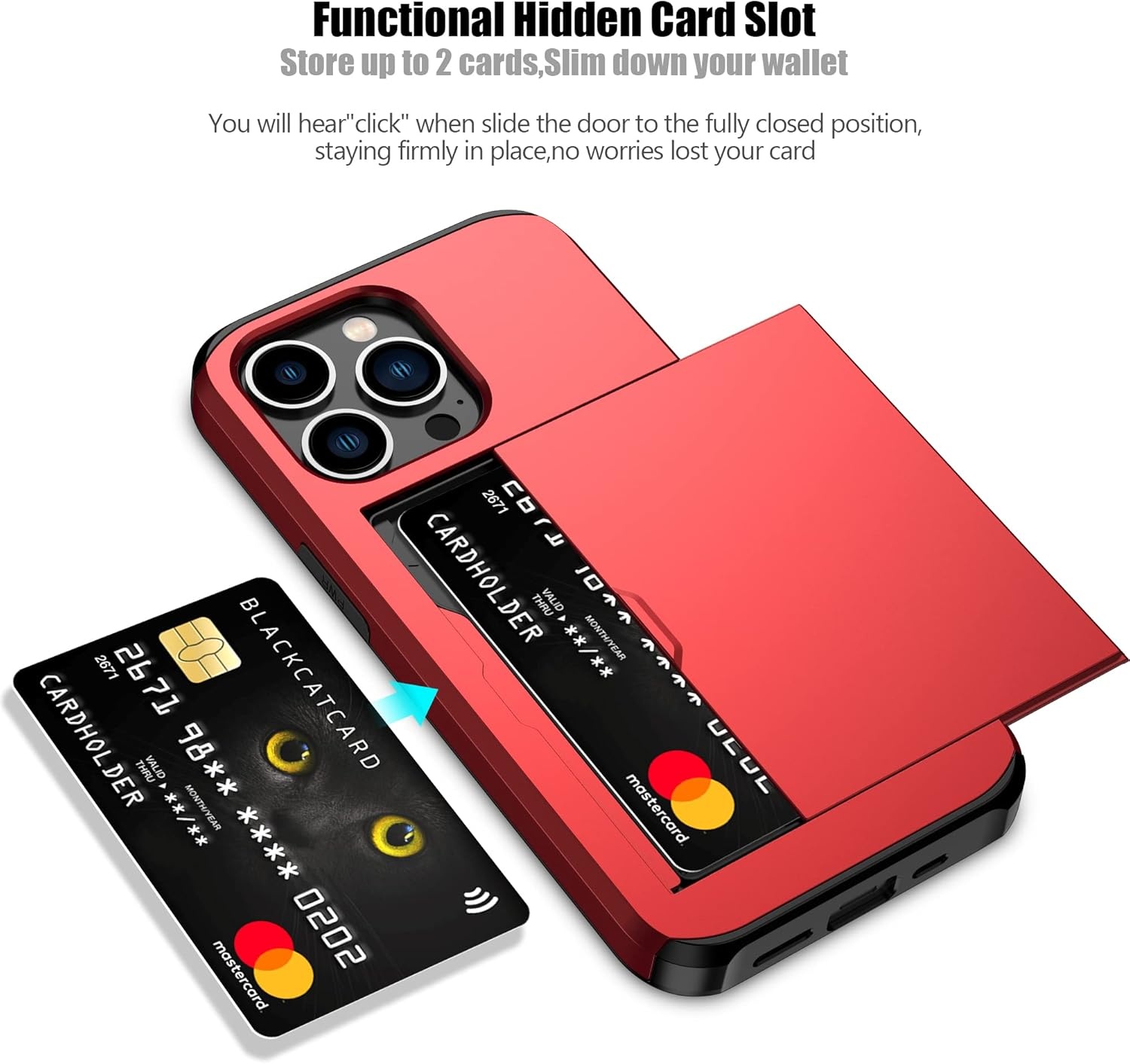 Nauwkeurige uitsparing: De uitsparing past precies bij elke knop, camera, luidsprekers en poorten, gemakkelijk in te drukken en te openen. Pakket bevat één telefoonhoesje met creditcardhouder ALLEEN compatibel met iPhone 13 Pro.