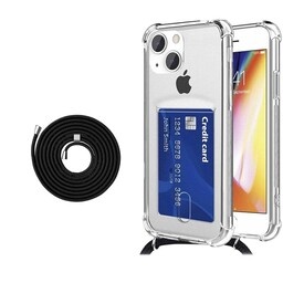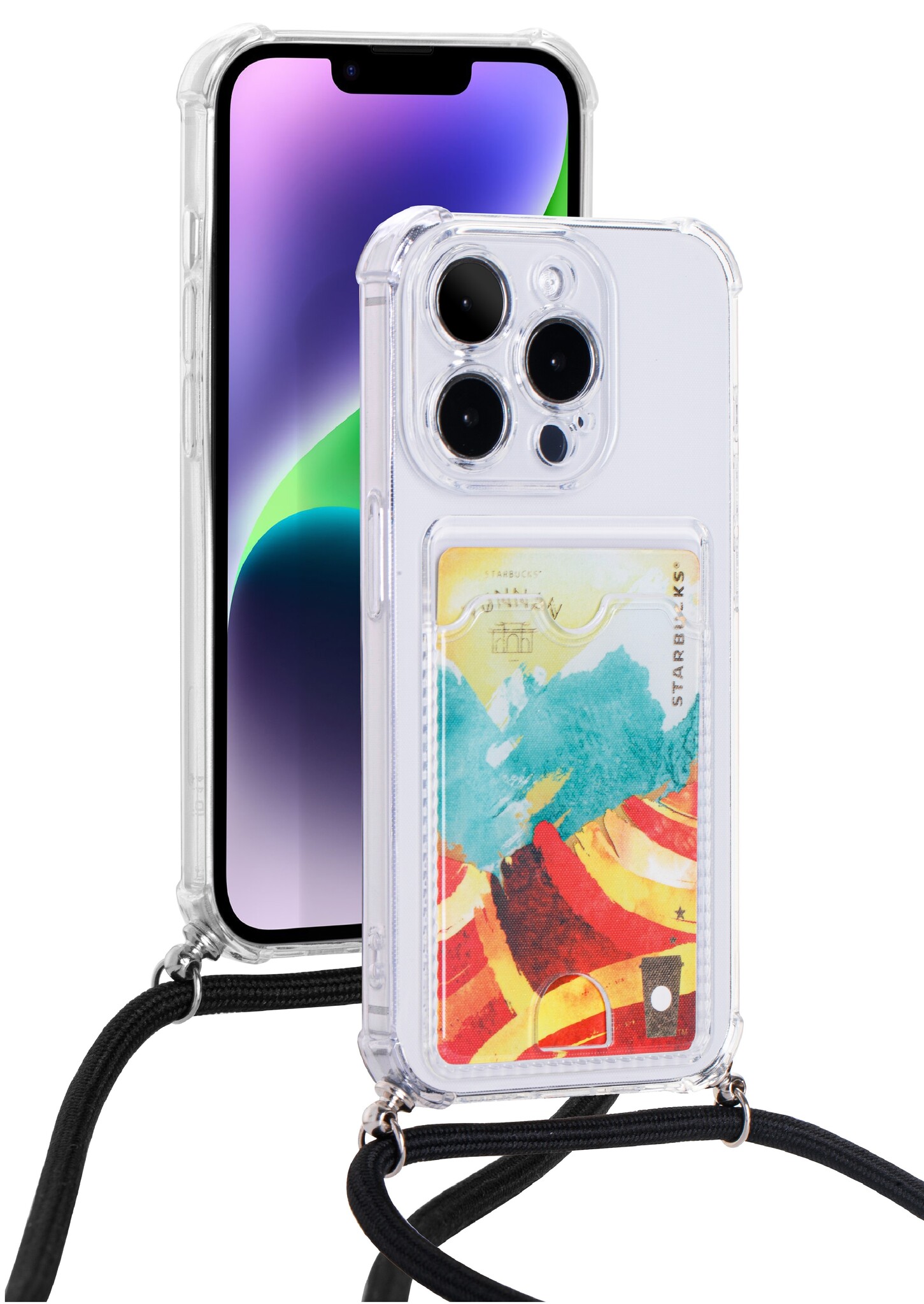 Hoesje geschikt voor iPhone 14 Koord Hoesje Met Pashouder Koord Zwart - oTronica