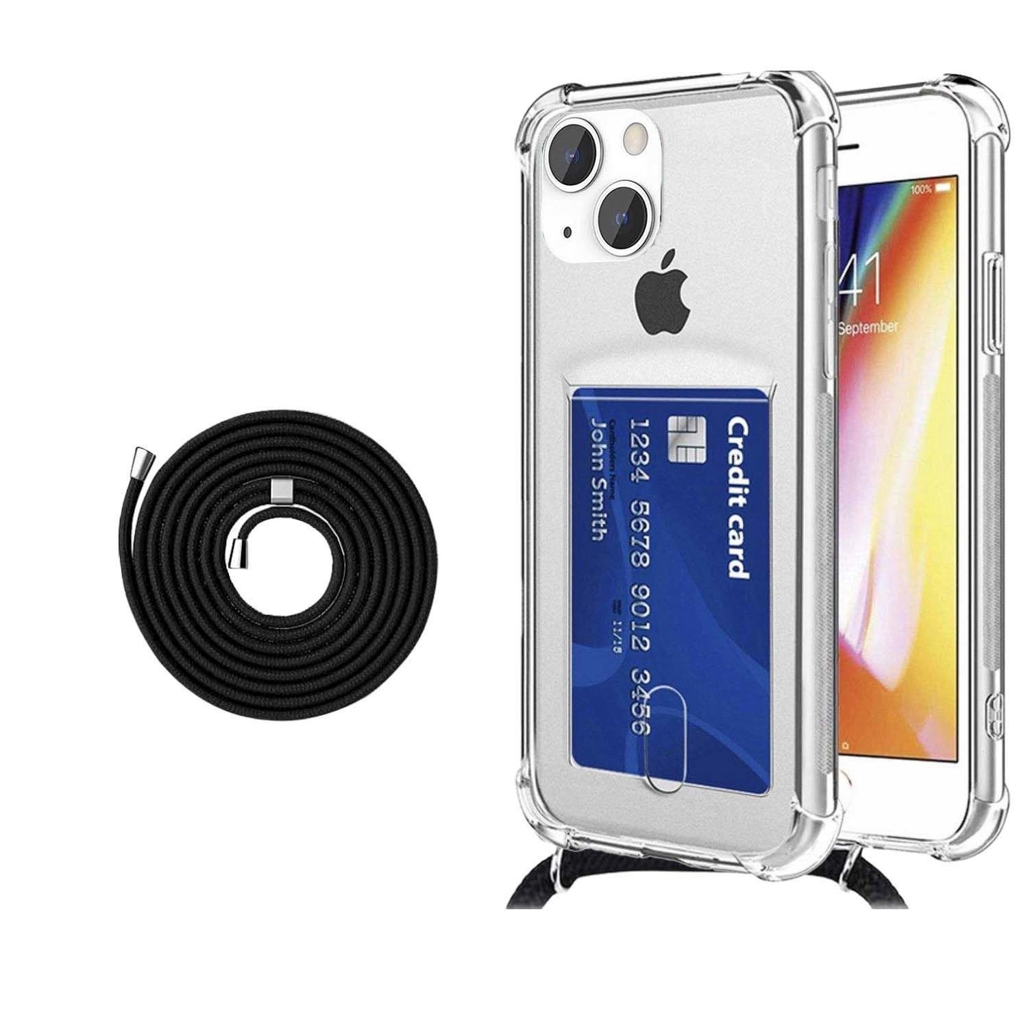 Hoesje geschikt voor iPhone 14 Pro Koord Hoesje Met Pashouder Koord Zwart - oTronica