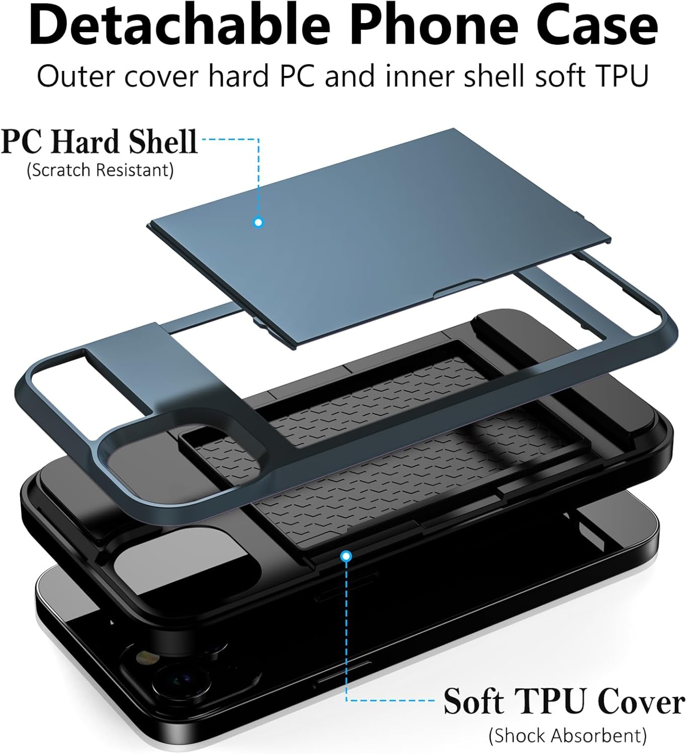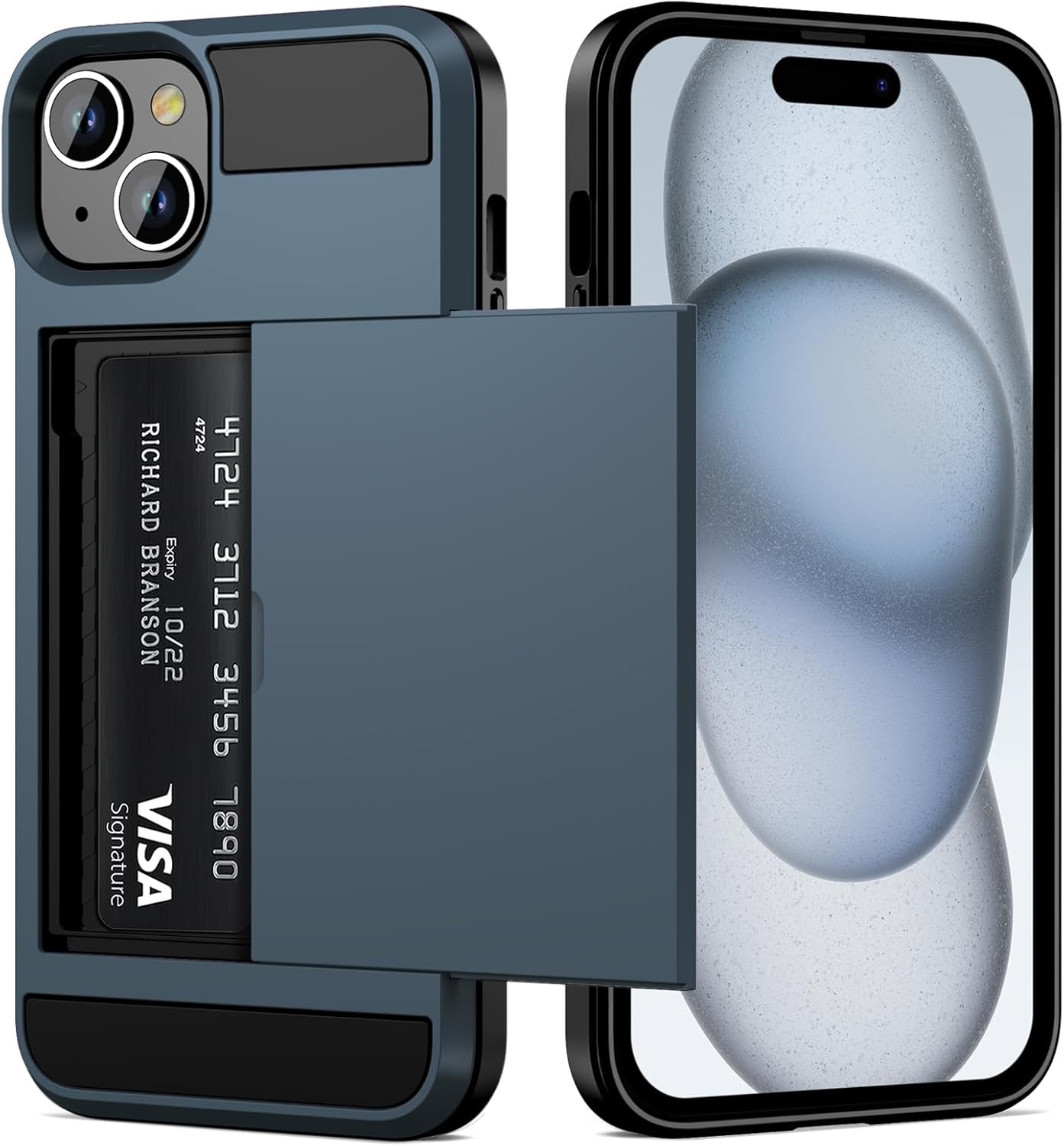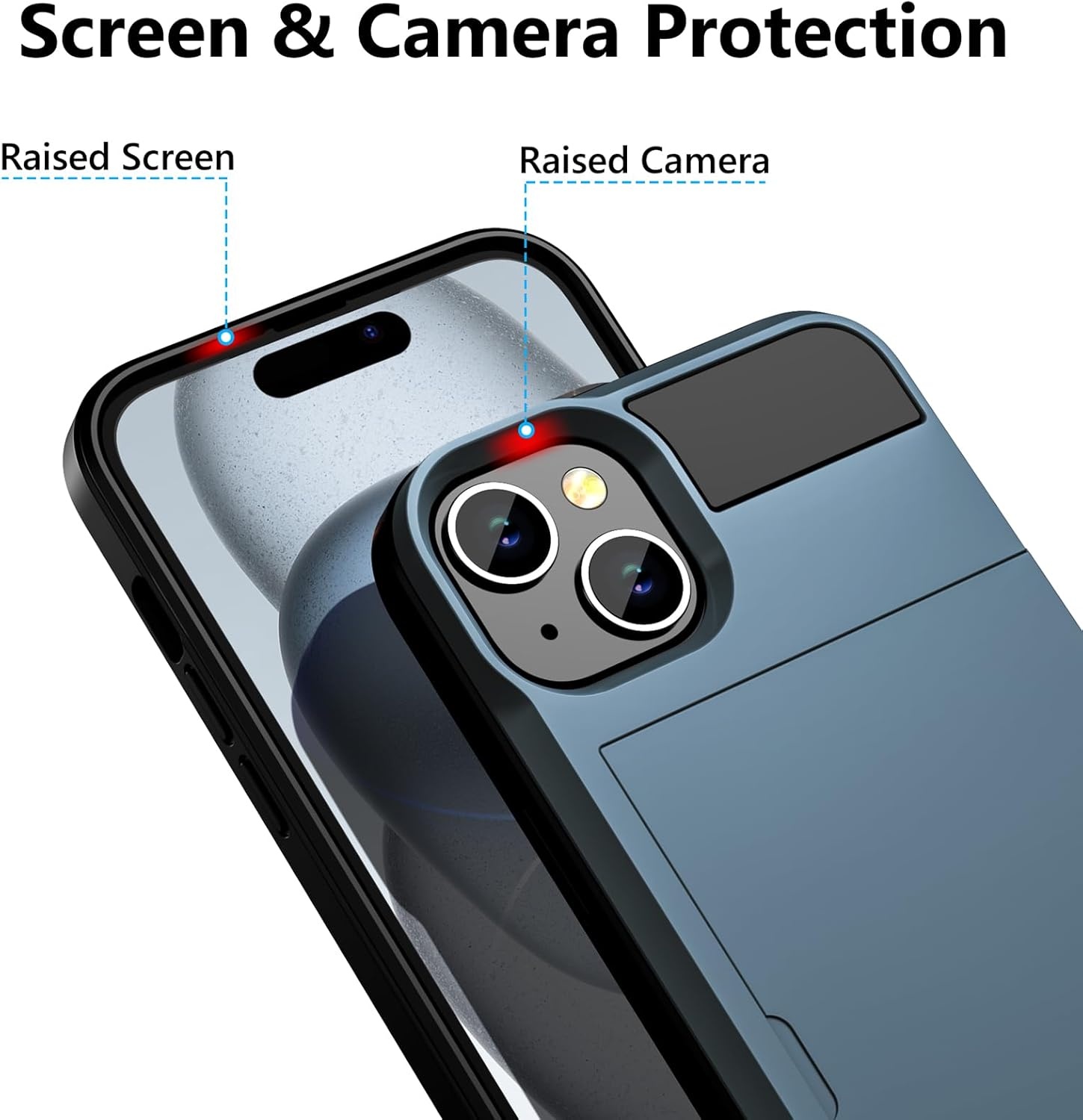 Nauwkeurige uitsparing: De uitsparing past precies bij elke knop, camera, luidsprekers en poorten, gemakkelijk in te drukken en te openen. Pakket bevat één telefoonhoesje met creditcardhouder ALLEEN compatibel met iPhone 15.