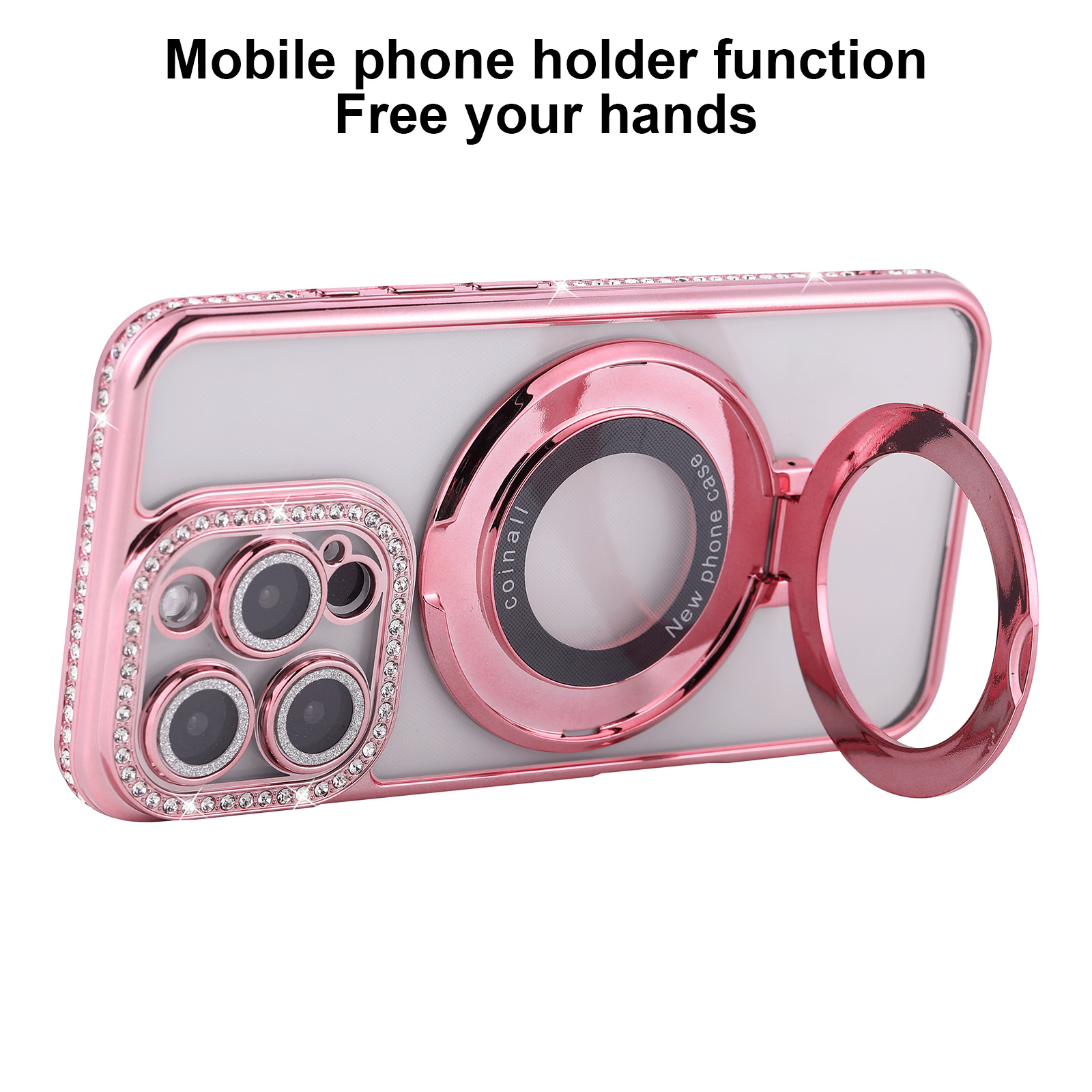 Hoesje Geschikt voor iPhone 15 Magsafe hoesje Rose Goud - Lens beschermer ring Luxury Bling Sparkly Diamond backcover