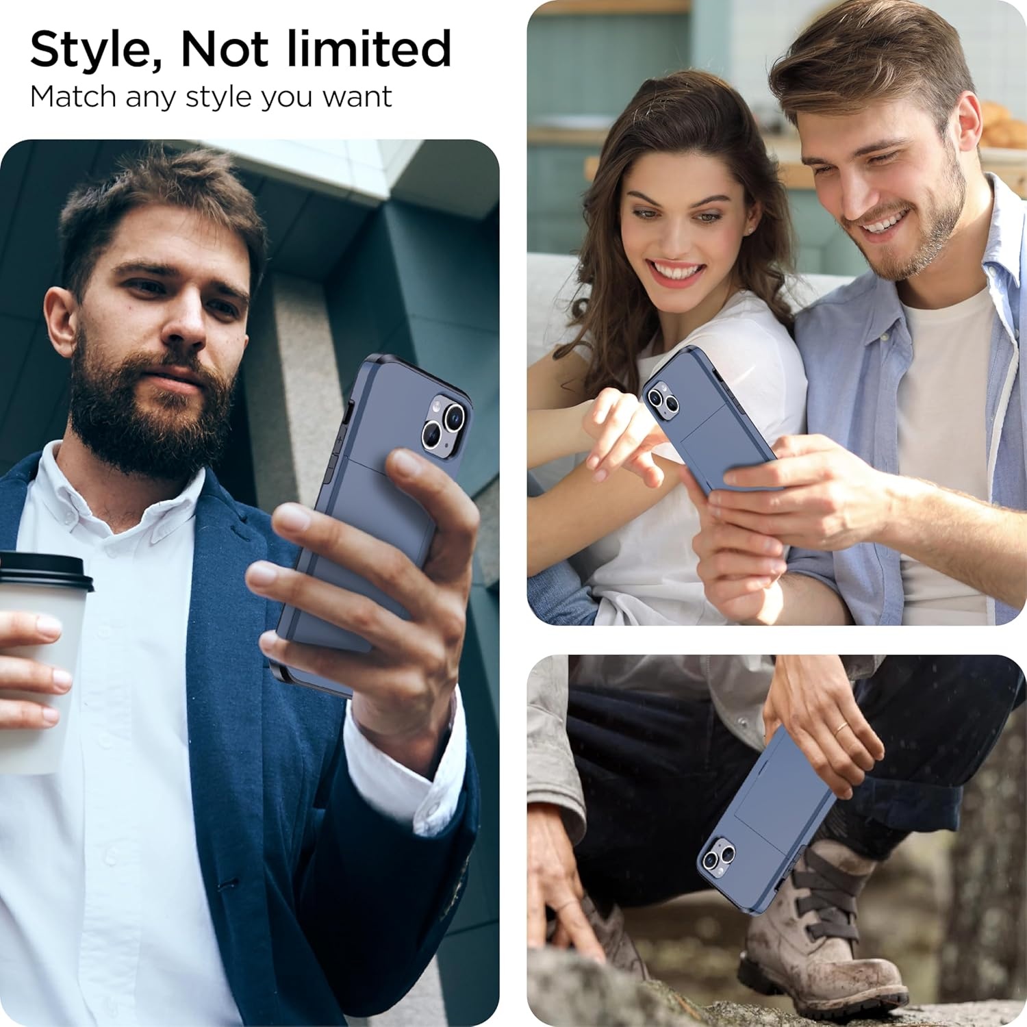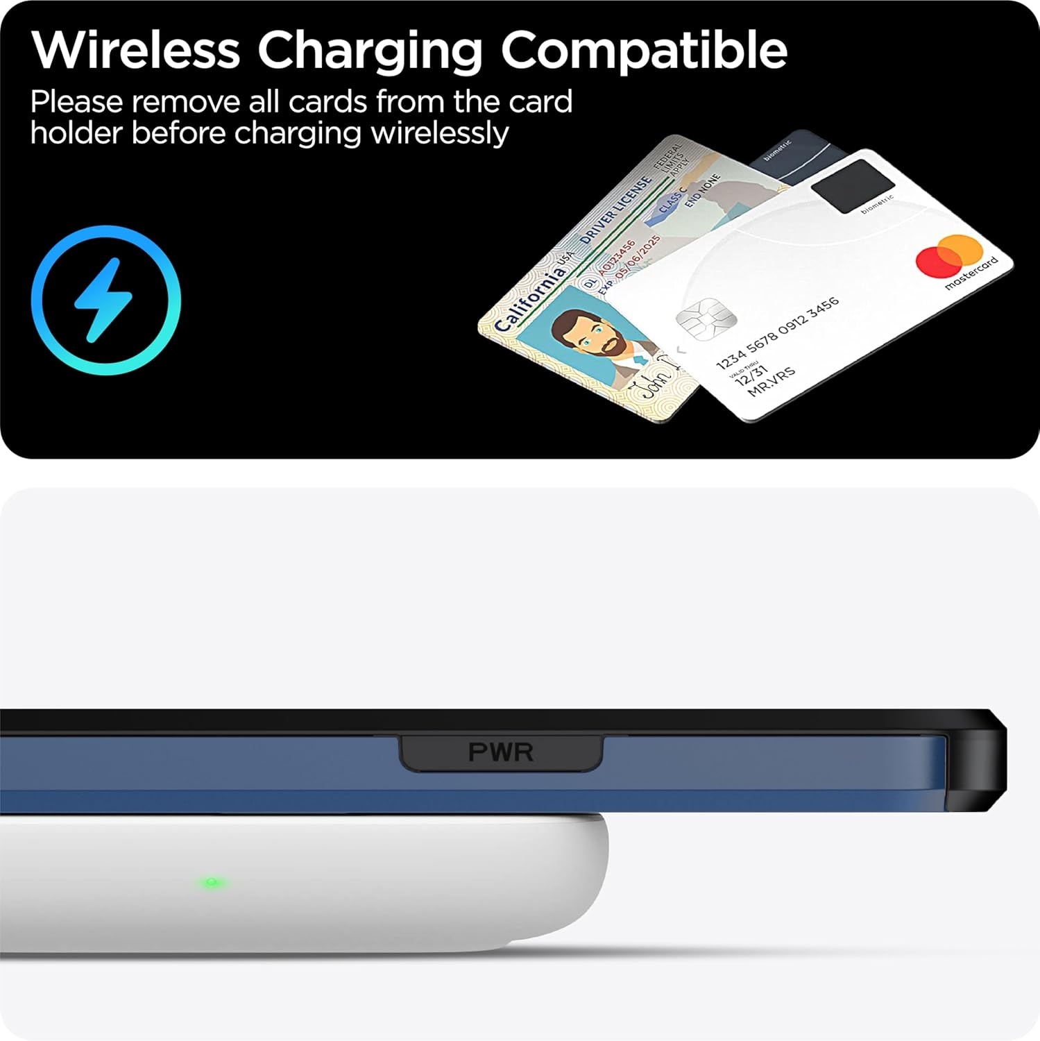 De slanke buitenkant is gemakkelijk in en uit zakken te schuiven. Draadloos opladen zonder de hoes te verwijderen. *Herinnering: Verwijder alle kaarten uit de verborgen kaartsleuf tijdens het draadloos opladen.