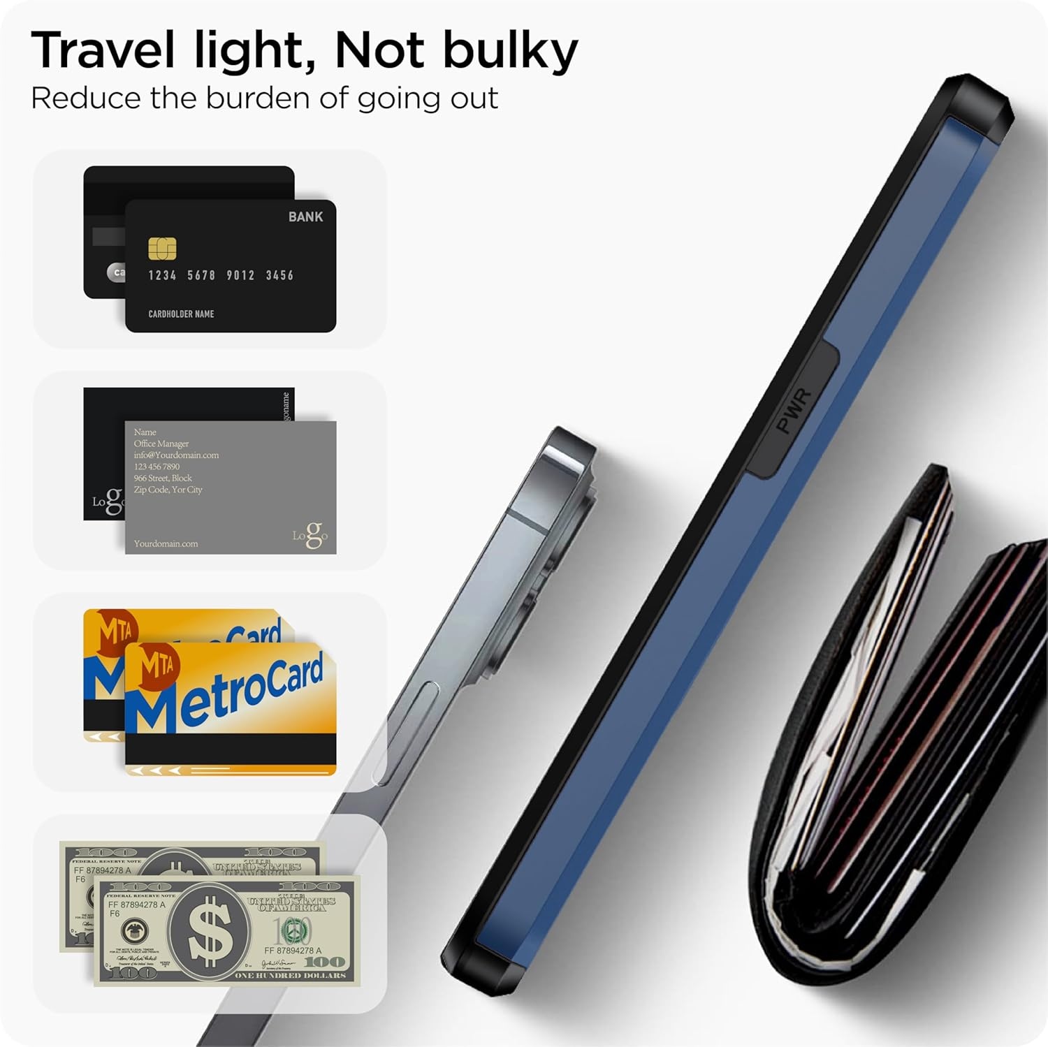 Verborgen kaartsleuf ontwerp: Slank je portemonnee af, berg maximaal 2 kaarten op, draag je ID en creditcard in plaats van je enorme portemonnee overal mee naartoe te slepen, met alle benodigdheden in één hand, je zult het geweldig vinden hoe handig het is. Je hoort een “klik” als je het deurtje in de volledig gesloten positie schuift, het schuifje blijft stevig op zijn plaats zitten en je hoeft je geen zorgen te maken dat je je kaart kwijtraakt.