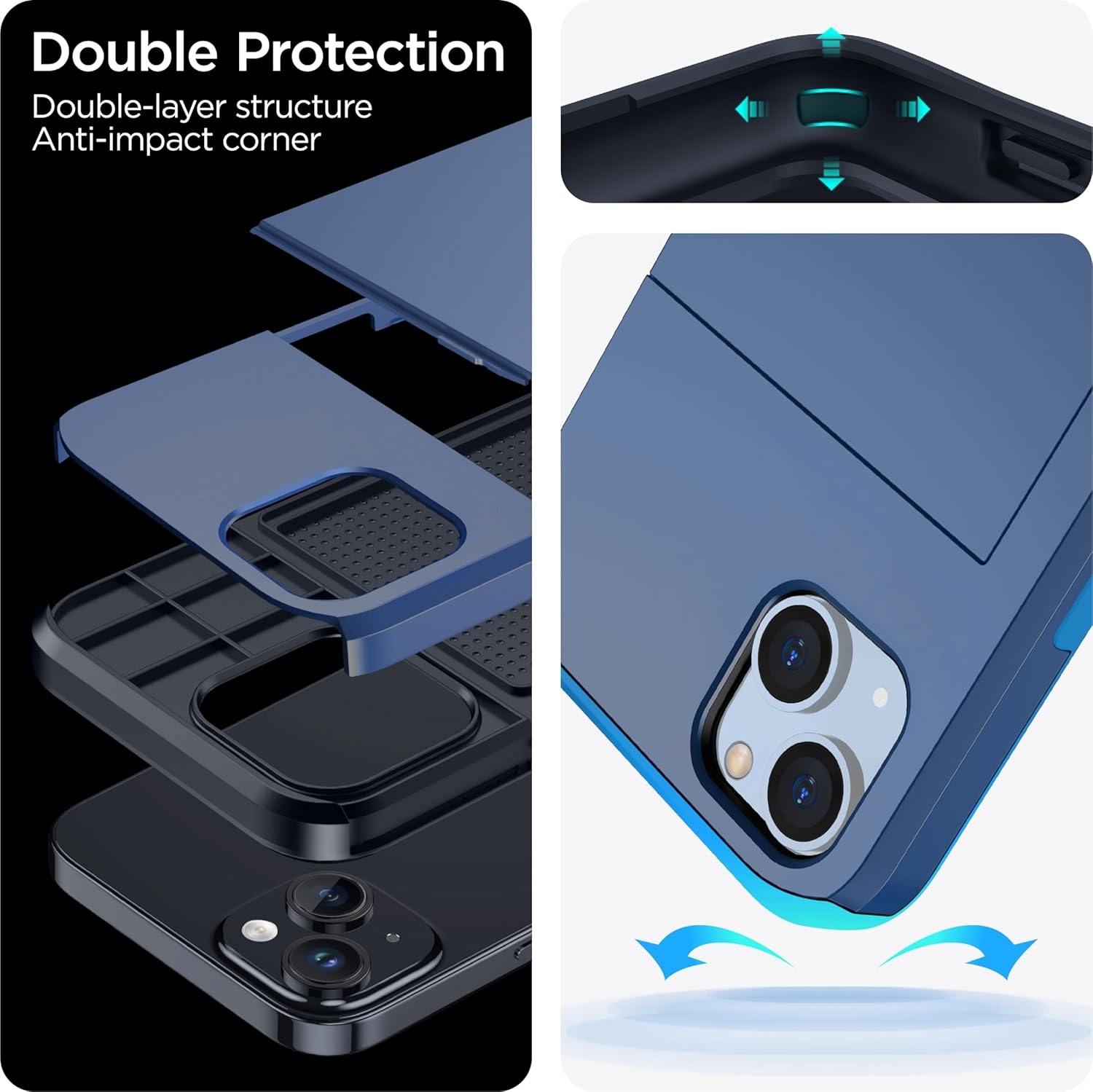 Nauwkeurige uitsparing: De uitsparing past precies bij elke knop, camera, luidsprekers en poorten, gemakkelijk in te drukken en te openen. Pakket bevat één telefoonhoesje met creditcardhouder ALLEEN compatibel met iPhone 15 Plus.