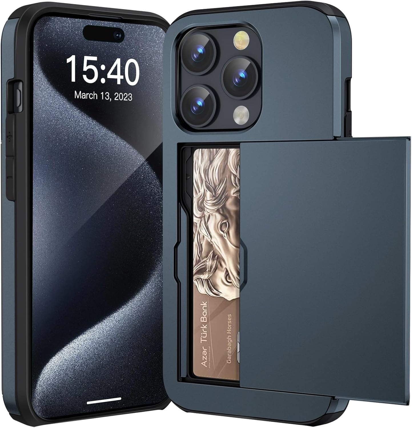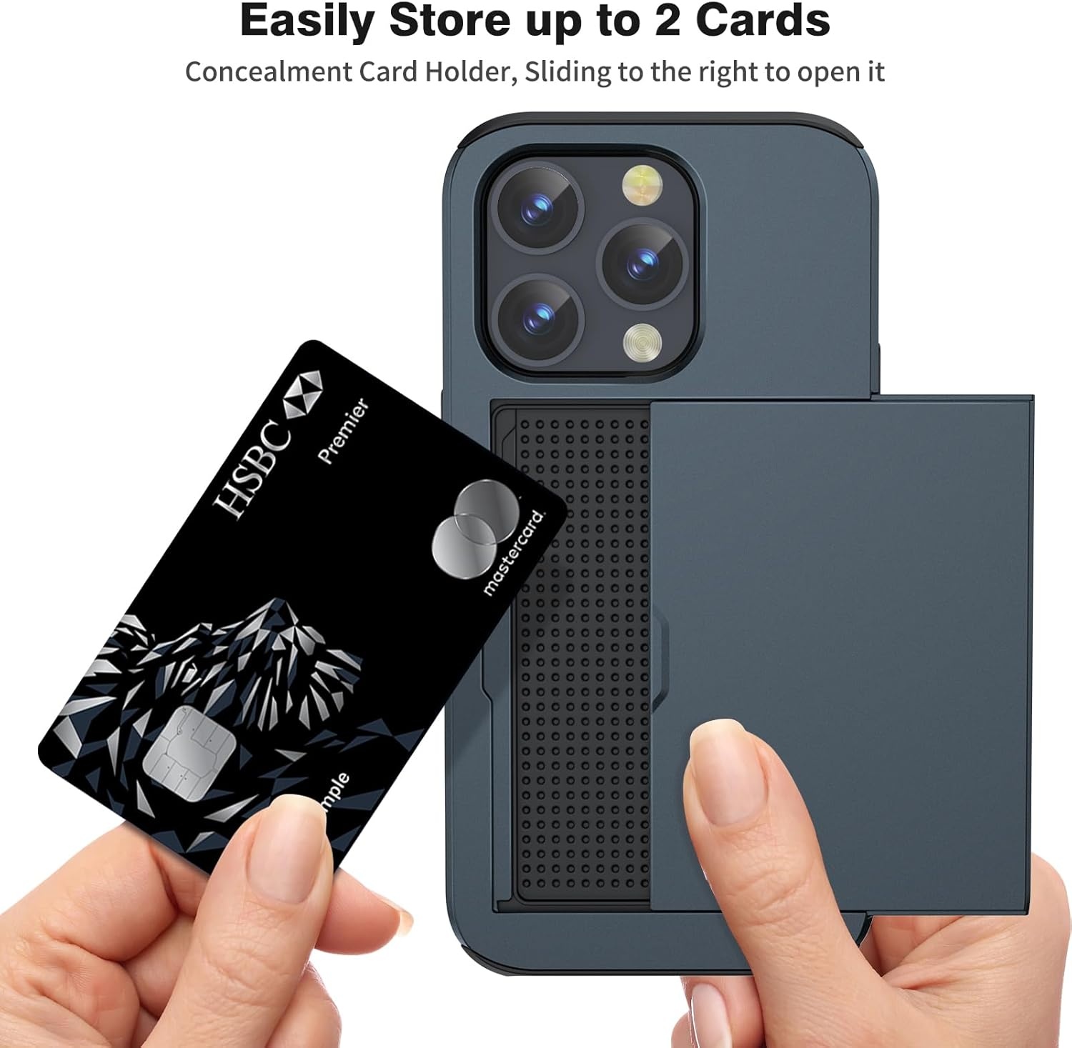 Nauwkeurige uitsparing: De uitsparing past precies bij elke knop, camera, luidsprekers en poorten, gemakkelijk in te drukken en te openen. Pakket bevat één telefoonhoesje met creditcardhouder ALLEEN compatibel met iPhone 15 pro.