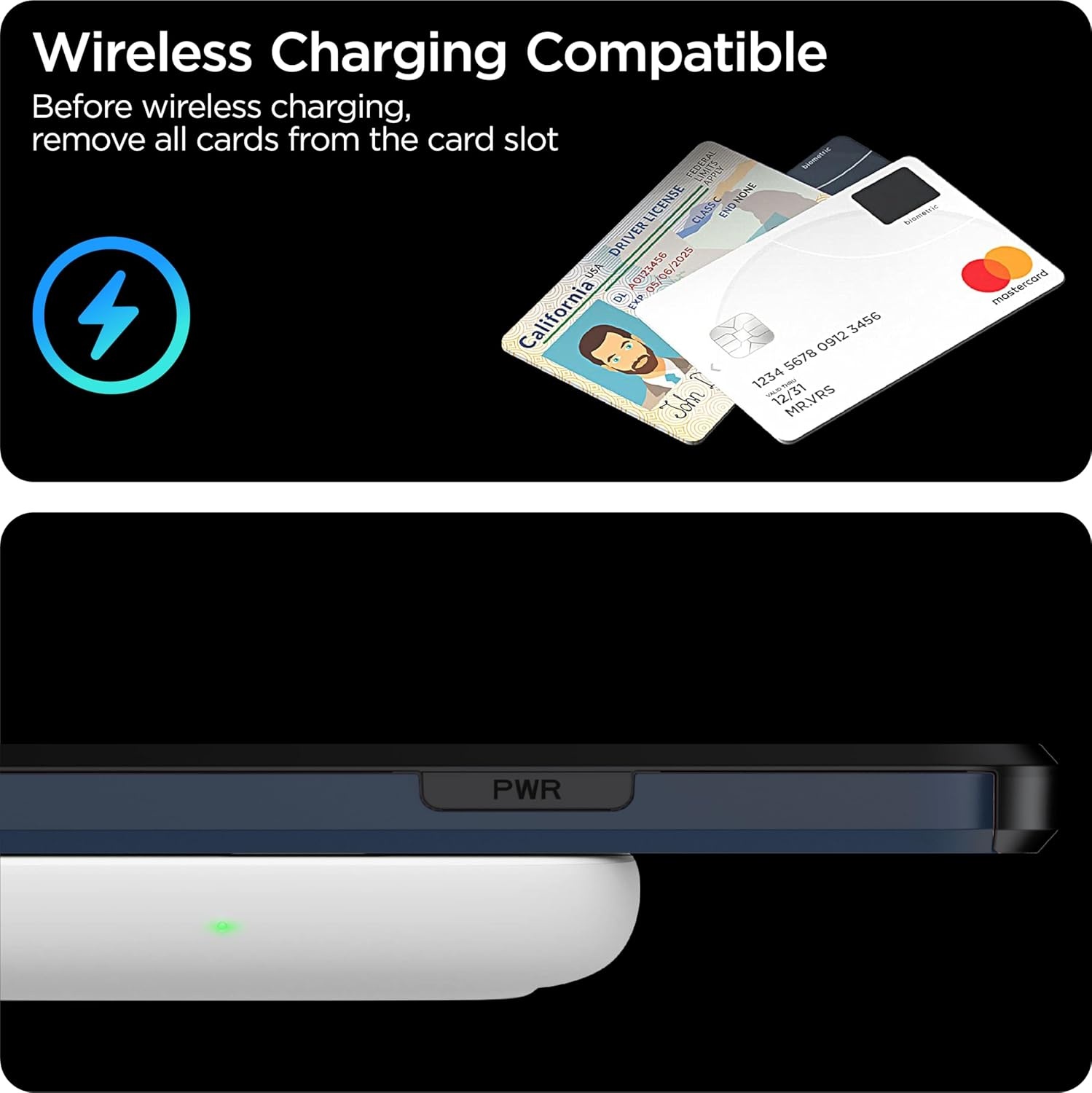 De slanke buitenkant is gemakkelijk in en uit zakken te schuiven. Draadloos opladen zonder de hoes te verwijderen. *Herinnering: Verwijder alle kaarten uit de verborgen kaartsleuf tijdens het draadloos opladen.