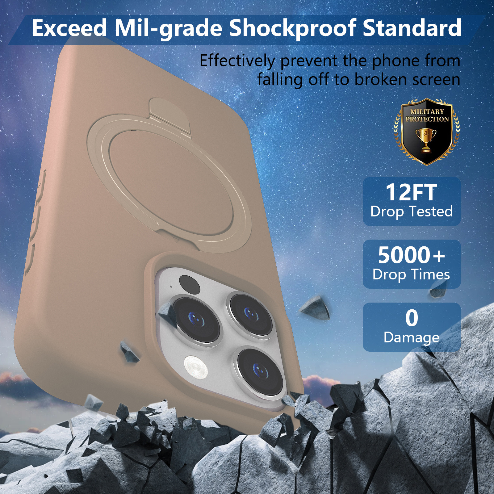 De geïntegreerde ringstandaard voegt extra gebruiksgemak toe. De ring is draaibaar en kan worden gebruikt als standaard in zowel verticale als horizontale positie. Ideaal voor videobellen, het bekijken van video’s, scrollen of handsfree gebruik. Wanneer de ring niet wordt gebruikt, klapt deze netjes plat tegen de hoes aan, waardoor het slanke design behouden blijft.