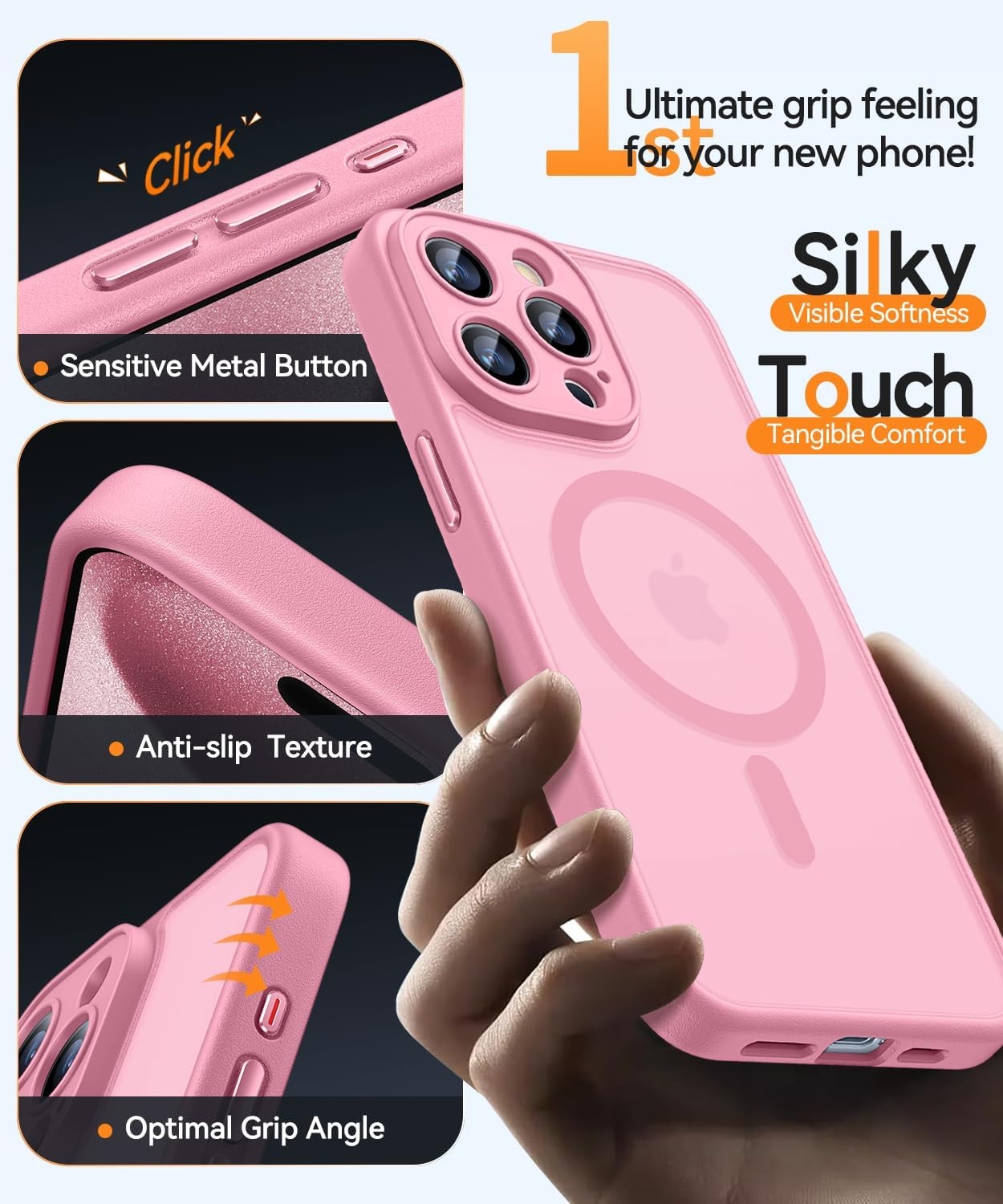 Bescherm je iPhone 15 Pro Max in stijl met deze premium MagSafe-compatibele bumper case, ontworpen voor gebruikers die zowel functionaliteit als een moderne look waarderen. De matte frosted achterkant is bestand tegen vingerafdrukken en krassen, terwijl de schokabsorberende bumperranden bescherming bieden tegen stoten en vallen. De ingebouwde cameralensbeschermer houdt je lenzen schoon en veilig, zonder invloed op de beeldkwaliteit – perfect voor haarscherpe foto’s, altijd en overal.