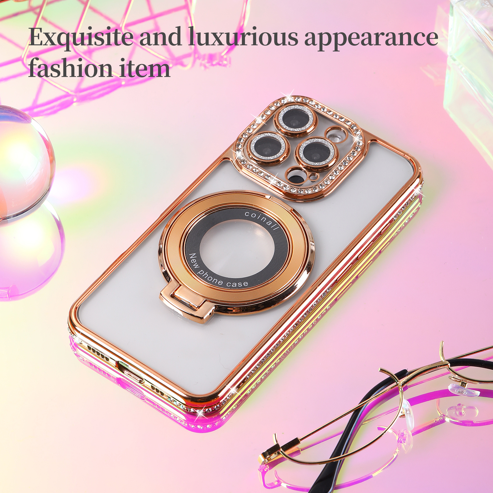 Geef jouw iPhone 15 Pro Max een luxueuze upgrade met de Ntech Transparante Backcover Case met ring kickstand, speciaal ontworpen om stijl, bescherming en gebruiksgemak te combineren. Deze schitterende hoes is niet alleen een lust voor het oog, maar biedt ook praktische functies zoals MagSafe-compatibiliteit, een handige 360° draaibare ringstandaard, en een elegante afwerking met sparkly diamant rhinestones.