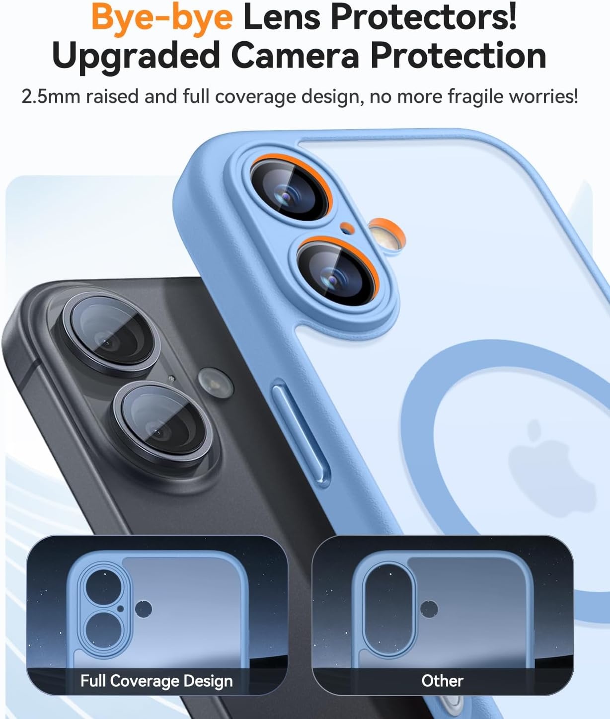 Hoesje Geschikt voor iPhone 16 Hoesje Licht Blauw - Hoesje Geschikt voor MagSafe iPhone 16 - Shockproof Back Cover met Lens beschermer