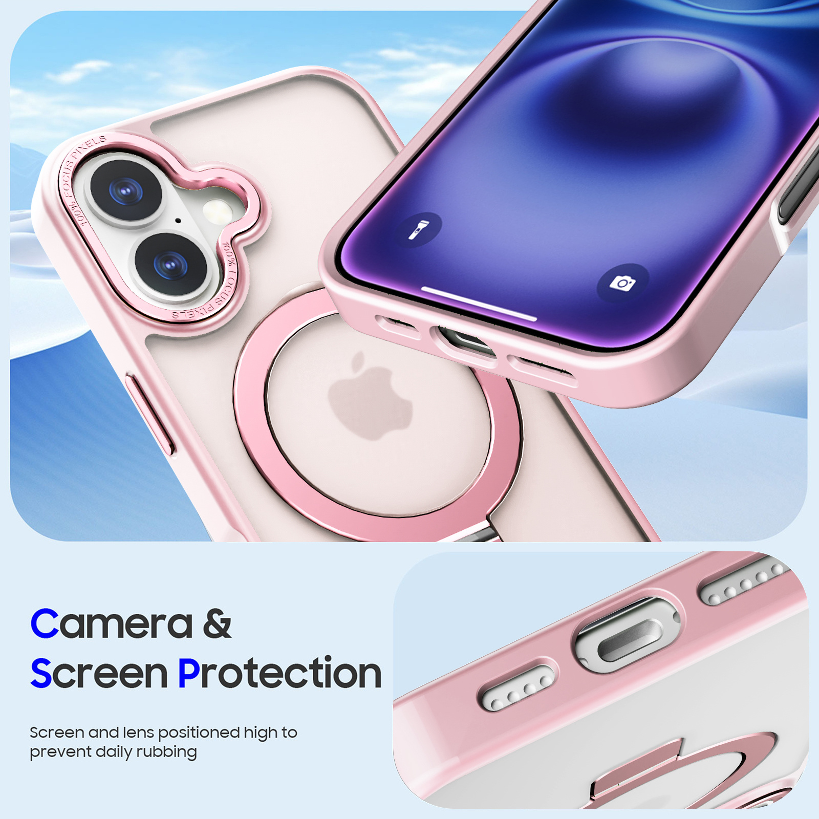 Met de ingebouwde ringstandaard wordt het kijken van video’s, het volgen van recepten of het videobellen een comfortabele ervaring. Geen vermoeide handen meer – jouw iPhone 16 blijft stevig staan op elk oppervlak.