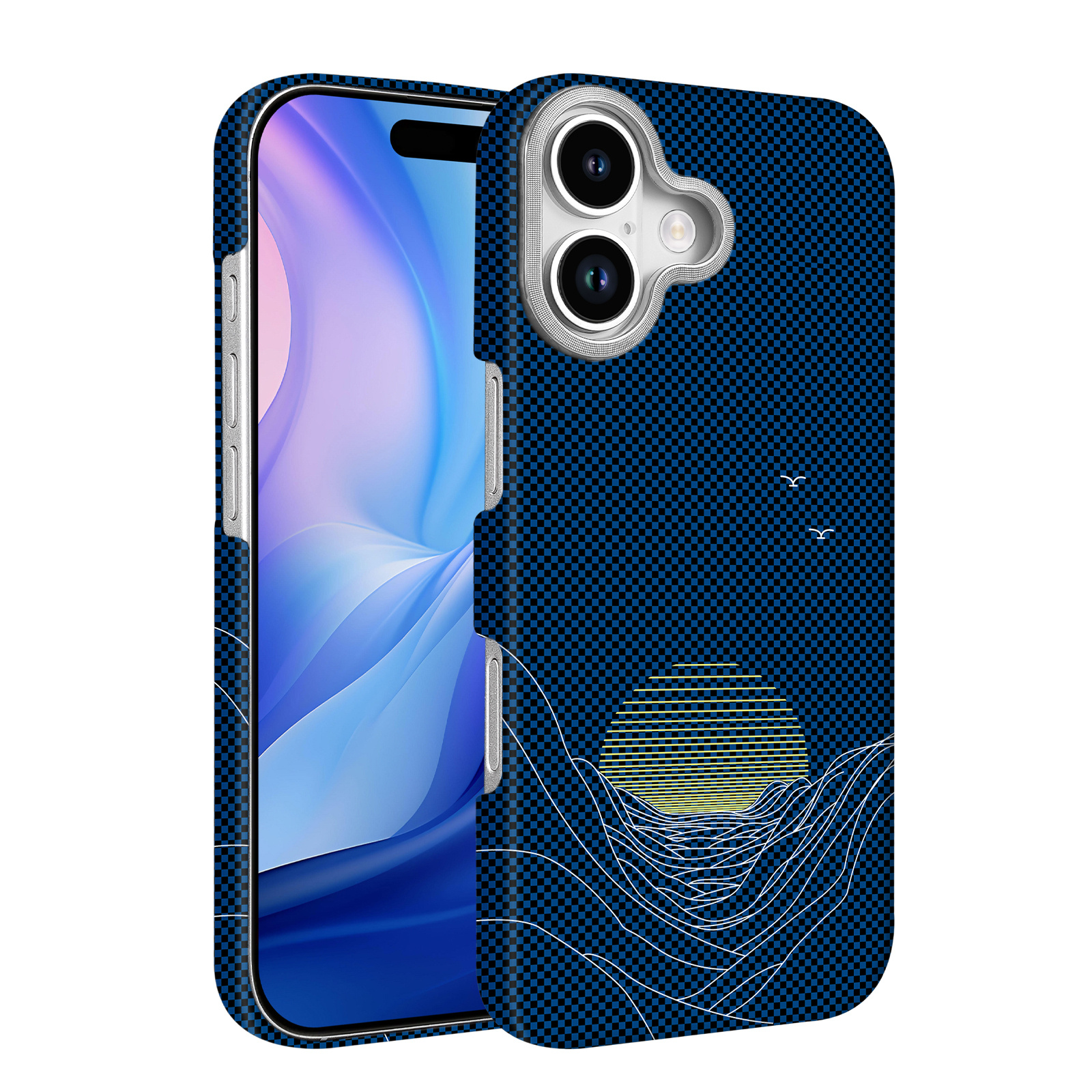 Hoesje Geschikt voor iPhone 16 Plus Hoesje Blauw Sunset - Carbon Hoesje Geschikt voor MagSafe iPhone 16 Plus - Shockproof Back Cover