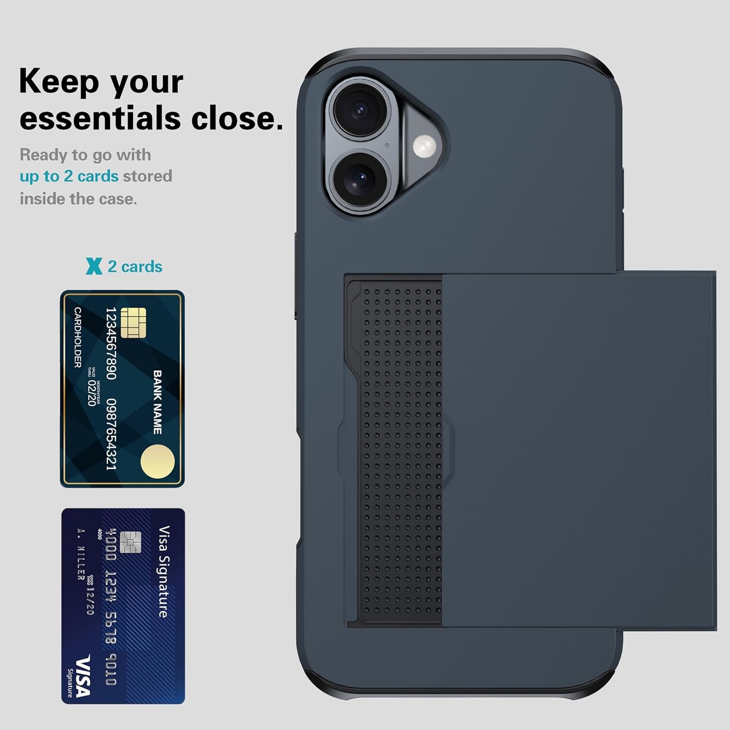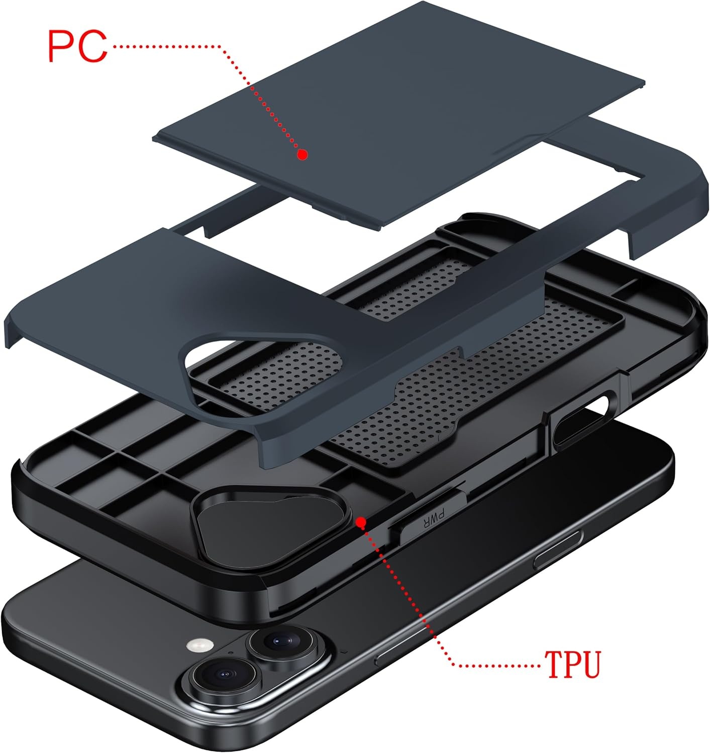 Nauwkeurige uitsparing: De uitsparing past precies bij elke knop, camera, luidsprekers en poorten, gemakkelijk in te drukken en te openen. Pakket bevat één telefoonhoesje met creditcardhouder ALLEEN compatibel met iPhone 16 Plus.