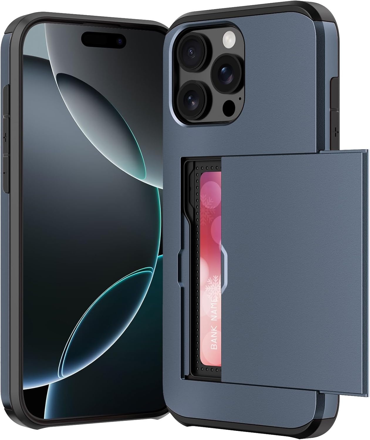 Hoesje Geschikt voor iPhone 16 Pro Hoesje Navy - shockproof Backcover met pasjeshouder - Ruimte voor 2 pasjes